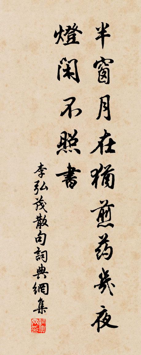 詩詞名句歷史字典書法欣賞書法字典國語詞典說文解字康熙字典古漢語字典標 題 作 者 詩 句 句作者:李弘茂 朝代:唐代句原文半窗月在猶煎藥,幾夜燈閒不照書。詩詞問答問:句的作者是誰?答:李弘茂問:句寫於哪個朝代?答:唐代李弘茂句書法欣賞句書法作品注釋《病中》,並見《江表志》詩詞推薦迴風有懷呂溫〔唐代〕銀宮翠島煙霏霏,珠樹玲瓏朝日暉。神仙望見不得到,卻逐迴風何處歸。偶成孫應時〔宋代〕小齋隨分有琴書,此外蕭然一物無。地僻最饒間意味,日長還得睡工夫。四時風月吾心友,千里雲山古畫圖。天賜中秋夜坐連文鳳〔宋代〕寂寞無如此夜坐,西窗剪燭讀離騷。可鄰塵世多風雨,天柱峰頭月正高。金燈花陶夢桂〔宋代〕紫磨真金百鍊成,花神妝點似燈明。膽瓶盛取當書案,白首韓公對短檠。失題張耒〔宋代〕欲知老子居陳事,古寺蕭條屋數楹。倖免絕糧慚孔聖,更無環堵羨淵明。參差拙句何曾是,寵辱浮雲無可驚。斷送晚秋郊居八首趙蕃〔宋代〕病橘蕭蕭只古枝,二三酸子間蟲絲。人言社酒堪醫此,太息於今已後時。江上嬉行和永上人釋紹嵩〔宋代〕飛花滿眼句縱橫,江上閒吟立又行。正是如今江上好,薰風盡日文流鶯。頂山栗王伯廣〔宋代〕黃籬麝香抱中實,麝香紫苞發外麝香彩。寄蹤蜂窠垂,藏頭蝟皮隘。詎堪鼯鼠竊,更復猿猱采。心憐使民畏,時須端明殿學士張公輓詞樓鑰〔宋代〕三分已高明,樂哉賢父兄。勛名希葛亮,問學本諸程。襟滿英雄淚,琴亡手足情。相從九泉下,何處覓三英。梅花曲劉幾〔宋代〕結子非貪,有香不俗,宜當鼎鼐嘗。偶先紅紫,度韶華、玉笛占年芳。眾花雜色滿上林,未能教、臘雪埋藏。卻怕句魯交〔宋代〕煙蘿梓郡東,蓮梵白雲中。瑞雲院大樹林中二首方回〔宋代〕城中遙望萬重雲,今日蟬聲始一聞。略計此山松竹數,漢時應比百封君。和元晦懷定叟戲作張栻〔宋代〕路入青山小作程,每逢佳處憶吾人。山林朝市休在念,認取臨深履薄身。戲李文遠孫棨〔唐代〕引君來訪洞中仙,新月如眉拂戶前。領取嫦娥攀取桂,便從陵谷一時遷。又題草衣岩胡寅〔宋代〕攜手童烏三尺強,已知經術勝文章。可憐不見凌雲日,迸灑西風淚幾行。九月下旬有作二首張耒〔宋代〕慘慘歲雲暮,寒日無停光。況復陰晦多,景短重雲長。梳頭坐清曉,朝飯熟黃粱。官閒無事業,終日偃空堂。經時贈沖雅師鄭獬〔宋代〕姑孰上人溪上居,碧松搖雨晚涼初。誰將六角竹枝扇,來問羲之覓草書。楊花楊萬里〔宋代〕只道垂楊管別離,楊花一去不思歸。浮蹤浪跡無拘束,飛到蛛絲也不飛。將游東都留別包諫議戴叔倫〔唐代〕衰客慚墨綬,素舸逐秋風。雲雨恩難報,江湖意已終。縣當仙洞口,路出故園東。唯有新離恨,長留夢寐中。呂縉叔雲叔嘉僧希用隱居能談史漢書講說邀余梅堯臣〔宋代〕奈苑談經者,蘭台著作稱。吾儒不兼習,爾學若多能。每愛前峰好,閒穿弊屐登。定將修史筆,添傳入高僧。名句推薦敗垣芳草,空廊落葉,深砌蒼苔。徐再思《人月圓·甘露懷古》 八佾舞於庭,是可忍也,孰不可忍也?孔子弟子《論語·八佾篇》 若待得君來向此,花前對酒不忍觸。蘇軾《賀新郎·夏景》 江帶峨眉雪,川橫三峽流。李白《經亂離後天恩流夜郎憶舊遊書懷贈江夏韋太守良宰》 憶年十五心尚孩,健如黃犢走復來。杜甫《百憂集行》 見說五湖供飲馬,滄浪何處著漁舟?陳子龍《秋日雜感(十首選一)》 起來無語理朝妝,寶匣鏡凝光顧敻《虞美人·觸簾風送景陽鍾》 審定有無與其實虛,隨其嗜欲以見其志意。王詡《鬼谷子·捭闔》 海闊山遙,未知何處是瀟湘柳永《玉蝴蝶·望處雨收雲斷》 居家戒爭訟,訟則終凶;處世戒多言,言多必失。朱柏廬《朱子家訓·全文》