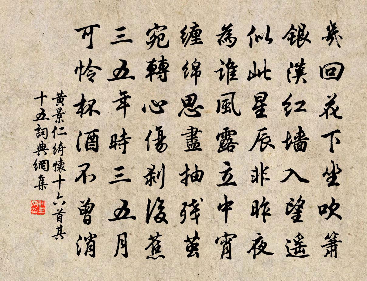 尾聯“三五年時三 五月,可憐杯酒不曾消”。尾聯同首聯呼應,三五年時三五之月,自然是“幾回花下坐 * ”的往昔,而那時的美酒在今夜早已被釀成苦澀的酒。而這種苦澀是永遠也無法消除的。因為,詩人無法不想念,也就無法同往昔和現實的夾縫之中突圍出來。法國著名詩人繆塞說:“最美麗的詩歌也是最絕望的詩歌,有些不朽的篇章是純粹的眼淚。”黃景仁的七言律詩《綺懷十六首之十五》,也正是因為這種絕望而更有了魅力。