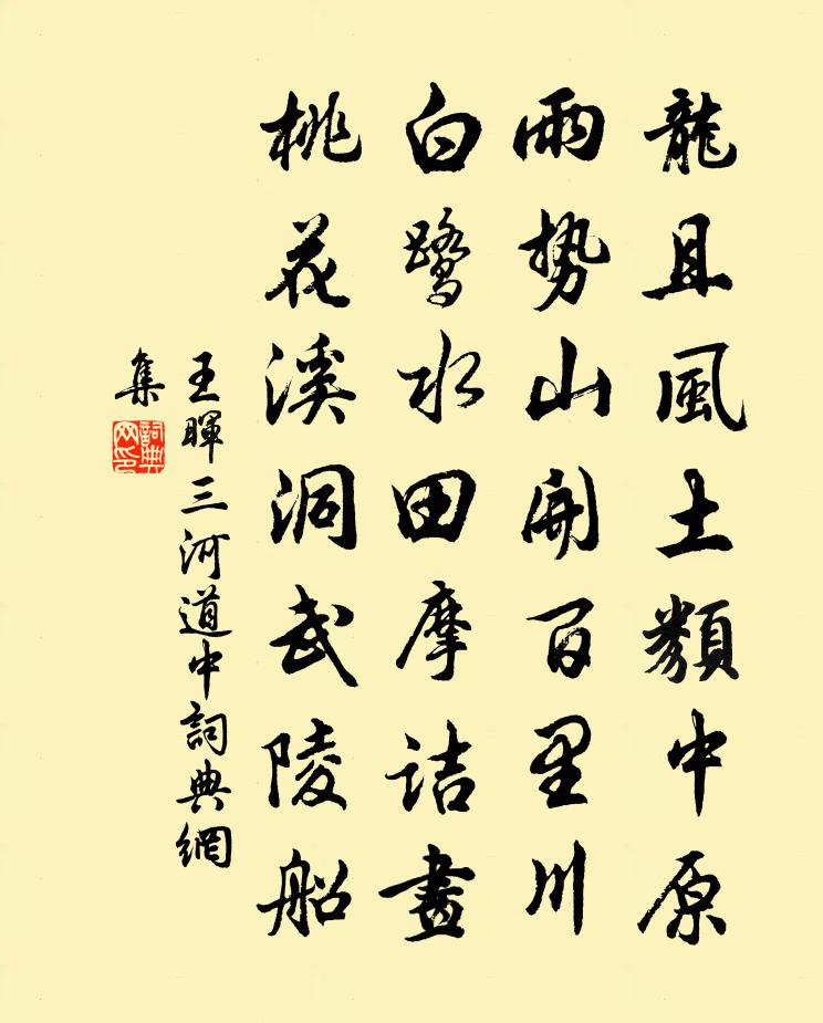 詩詞名句歷史字典書法欣賞書法字典國語詞典說文解字康熙字典古漢語字典標 題 作 者 詩 句 三河道中作者:王暉 朝代:宋代三河道中原文龍且風土類中原,雨勢山開百里川。白鷺水田摩詰畫,桃花溪洞武陵船。詩詞問答問:三河道中的作者是誰?答:王暉問:三河道中寫於哪個朝代?答:宋代王暉三河道中書法欣賞三河道中書法作品詩詞推薦戎州汪元量〔宋代〕害馬勞人事已灰,長安無復使臣來。滿園蓊蔚千千樹,儘是楊妃死後栽。挽陳夫人徐照〔宋代〕平陽林給事,有女識比書。為婦極能孝,今人皆不如。得年非餌藥,了葬自餐蔬。閩嶠嗟埋骨,新碑到野廬。和魯直張耒〔宋代〕濟物非僕僕,功名愧無心。倚市安能美,汲泉不厭深。老人夙有尚,瓶缽好叢林。安能紅塵里,徒使老駸駸。偈釋紹慈〔宋代〕我祖別行最上機,縱橫生殺絕猜疑。雖然塞斷群狐路,返擲須不師子兒。至真州再和二首蘇軾〔宋代〕老手王摩詰,窮交孟浩然。論詩曾伴直,話舊已忘年。北上難陪驥,東行且趁船。離亭花映肉,醉眼鷺窺蓮。柂轉螺江廟陳誼〔宋代〕廟裡杉松蕭颯風,廟前江水碧溶溶。憑闌不見當時事,落日遠山千萬重。德壽宮慶壽口號十篇楊萬里〔宋代〕堯舜同時已甚都,祖孫四世古今無。誰將寫日摹天手,畫作皇王盛事圖。臨邑舍弟書至苦雨黃河泛溢堤防之患簿領所憂…用寬其意杜甫〔唐代〕二儀積風雨,百穀漏波濤。聞道洪河坼,遙連滄海高。職思憂悄悄,郡國訴嗷嗷。舍弟卑棲邑,防川領簿曹。尺書水宿聞雁李益〔唐代〕早雁忽為雙,驚秋風水窗。夜長人自起,星月滿空江。句王度〔宋代〕危紅賒晚景,漲綠上平沙。至荷湖二首曾鞏〔宋代〕悲風我眼澀,酸狖我耳愁。我顛水沒馬,我起雪滿裘。百里不逢人,豈有煙火投。卻倚青壁望,白霧滿九州。蒼蒼秋夜獨坐有感一章奉呈師說令尹奉議光明主簿陳東〔宋代〕依依客館夜燃膏,子夜羈愁無處逃。閒炷爐香聽夜雨,快斟杯酒讀離騷。休驚時節云何速,獨弔古人殊不遭。一陣送盧簡夫葉適〔宋代〕子昔葦間從我游,未曾一語相報酬。文杏將非廟廊具,澗蘋況是王公差。子今欻往西湖上,靈雨彩雲供筆仗。深思雜劇·摩利支飛刀對箭佚名〔元代〕第一折(沖末徐懋功領卒子上,雲)少年錦帶掛吳鉤,鐵馬西風塞草秋。全憑匣中三尺劍,坐中往往覓封侯。老夫靖安縣幽谷亭曾鞏〔宋代〕橫江舍輕楫,對面見青山。行盡車馬塵,豁見水石寰。地氣方以潔,崖聲落潺潺。雖為千家縣,正在清華間。風煙雪浪閣二首趙蕃〔宋代〕雪浪軒窗由塊石,未知欄檻倚江邊。故人曾為炰烹怖,一看姓名增惘然。偈頌八十七首釋慧開〔宋代〕咄這乾屎橛,生來太妖孽。堪笑老雲門。一棒打不殺。右軍復尅二書帖贊岳珂〔宋代〕書摹於唐,故不當印以貞觀。然而涸筆天成,書名雲爛,殆不止於真之亂。彼無別者,徒欲侈其真而汩以贗。石汰立春晃沖之〔宋代〕巧勝金花真樂事,堆盤細菜亦宜人。自慚白髮嘲吾老,不上譙門看打春。林正甫與子中春並命為御史正甫按刑浙東道別虞儔〔宋代〕銜命宮陵偶一回,山 * 上得徘徊。溟鵬好在思摶擊,乘雁何嘗計去來。萬壑千岩況秋色,明珠白璧更塵埃。相逢名句推薦為其象人而用之也。如之何其使斯民飢而死也。孟子《孟子·梁惠王章句上·第四節》 並官省事,靜事息役,上下用心,惟農是務也。房玄齡《晉書·列傳·第十七章》 媼引濃妝女,兒扶爛醉翁。范成大《寒食郊行書事》 山遠近,路橫斜,青旗沽酒有人家。辛棄疾《鷓鴣天·陌上柔桑破嫩芽》 知章騎馬似乘船,眼花落井水底眠杜甫《飲中八仙歌》 佳辰強飲食猶寒,隱几蕭條戴鶡冠。杜甫《小寒食舟中作》 詩成自寫紅葉,和恨寄東流。晏幾道《訴衷情·憑觴靜憶去年秋》 春風得意馬蹄疾,一日看盡長安花。孟郊《登科後》 籌邊獨坐,豈欲登覽快雙眸。戴復古《水調歌頭·題李季允侍郎鄂州吞雲樓》 最傷情、送客鹹陽,佩結西風怨。吳文英《瑣窗寒·玉蘭》