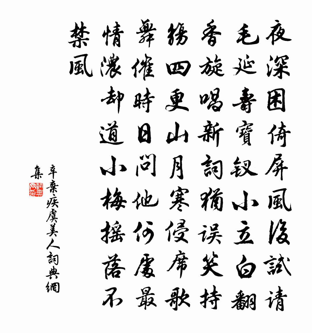 夜深困倚屏風后。試請毛延壽。寶釵小立白翻香。旋唱新詞猶誤、笑持觴。