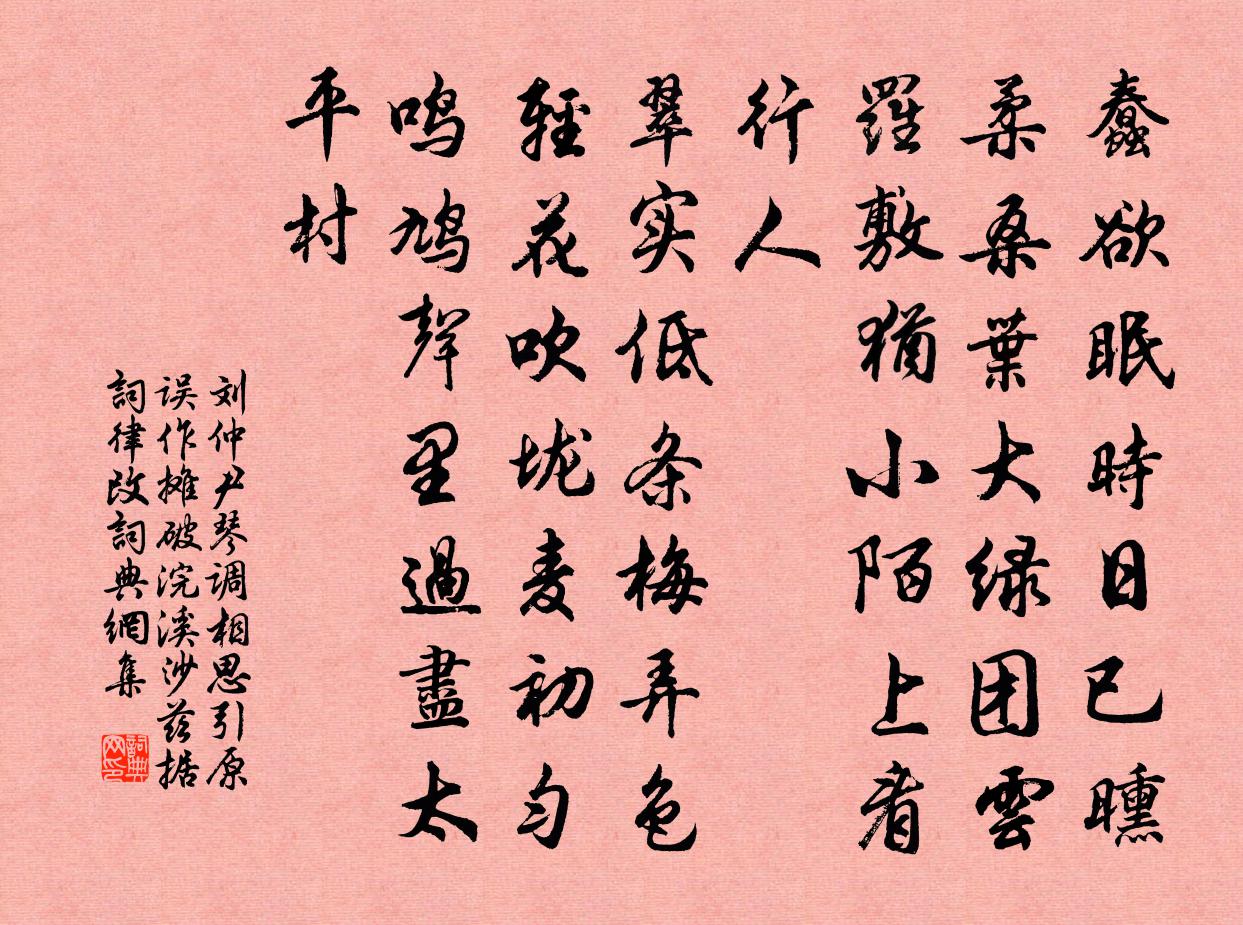 - 一簾紅雨桃花謝,十里清陰柳影斜。胡祗遹《陽春曲·春景》