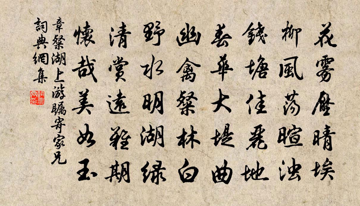 詩詞名句歷史字典書法欣賞書法字典國語詞典說文解字康熙字典古漢語字典標 題 作 者 詩 句 湖上游矚寄家兄作者:章粲 朝代:宋代湖上游矚寄家兄原文花霧壓晴埃,柳風盪暄濁。錢塘佳麗地,春華大堤曲。幽禽粲林白,野水明湖綠。清賞遠難期,懷哉美如玉。詩詞問答問:湖上游矚寄家兄的作者是誰?答:章粲問:湖上游矚寄家兄寫於哪個朝代?答:宋代章粲湖上游矚寄家兄書法欣賞湖上游矚寄家兄書法作品詩詞推薦隴州旅中(一作舍)書事寄李中丞許棠〔唐代〕三伏客吟過,長安未擬還。蛩聲秋不動,燕別思仍閒。亂葉隨寒雨,孤蟾起暮關。經時高嶺外,來往旆旌間。吊徐德占並引蘇軾〔宋代〕美人種松柏,欲使低映門。栽培雖易長,流惡病其根。哀哉歲寒姿,骯髒誰與論。竟為明所誤,不免刀斧痕。一遭頌釋自圓〔宋代〕南北東西萬萬千,乾坤上下兩無邊。相逢相見呵呵笑,屈指抬頭月半天。天封寺劉丹〔宋代〕桂旗芝蓋翳濃陰,嚴宇崢嶸枕柰林。蜺座有花和法雨,龍淵如鑑徹{左麥右夫}金。錫杖化去圓泉在,石志文昏亂姑蘇懷古姜夔〔宋代〕夜暗歸雲繞柁牙,江涵星影鷺眠沙。行人悵望蘇台柳,曾與吳王掃落花。又塔院洪咨夔〔宋代〕僧伽傳法處,阿育放光時。到頂直無縫,透心橫有枝。梅間詩鳳咮,竹裹酒鴟夷。醉上危層去,空明渺所思。晦夜李侍御萼宅集招潘述、湯衡、海上人飲茶賦皎然〔唐代〕晦夜不生月,琴軒猶為開。牆東隱者在,淇上逸僧來。茗愛傳花飲,詩看卷素裁。風流高此會,曉景屢裴回。奉和聖制豐年多慶九日示懷權德輿〔唐代〕寒露應秋杪,清光澄曙空。澤均行葦厚,年慶華黍豐。聲明暢八表,宴喜陶九功。文麗日月合,樂和天地同。聖言水仙子佚名〔元代〕百年三萬六千場,風雨憂愁一半妨。眼裡兒覷,心兒上想。教我鬢邊絲怎地當,把流年子細推詳。一日一個淺酌低桐柏山瓊台高似孫〔宋代〕翠岳竦神秀,玉衡直三台。上有長生君,含光赤城台。陽崖燁金芝,陰壑生碧苔。獨立雲在下,一嘯仙俱來。丹郎橋亭觀月張鎡〔宋代〕全似蒼崖涌月輪,暗林橫貫一溪明。家中幻出山中景,圮上追涼恰二更。仙掌銘獨孤及〔唐代〕陰陽開闔,元氣變化,泄為百川,凝為崇山,山川之作,與天地並,疑有真宰而未知屍其功者。有若巨靈贔屓,攘晝寢晃沖之〔宋代〕聞說齊州路,遙通古睡鄉。雲岩迷傅說,風峽宴襄王。日月星辰靜,山川草木長。不知三代貴,何似一張床。均州南川春日三首張舜民〔宋代〕宦名生事日悠悠,問道參禪已的頭。自笑攀緣猶未斷,每逢佳處即遲留。吳狀元史泳輓詞戴栩〔宋代〕理學通深藝學高,一官俄逐盛年拋。門中{上日下兆}董刊新志,海內陳雷哭舊交。黃落己空秋半葉,清芬未著臘洪雲岩有和謝之李曾伯〔宋代〕春近衡峰雁又回,才懷休憶故山梅。花期自是江南早,早晚湘南也解開。摽有梅佚名〔先秦〕摽有梅,其實七兮。求我庶士,迨其吉兮。摽有梅,其實三兮。求我庶士,迨其今兮。摽有梅,頃筐塈之。求我庶黃從事隨軍楊億〔宋代〕買符來赴調,負羽去從軍。五夜聞邊角,三時看陣雲。樽前還料敵,楯上更摛文。手筆人多許,須銘竇憲動。用拙為金罍徐氏賦林景熙〔宋代〕久知拙無用,飾巧以相賢。而君獨用拙,好古與世懸。不見百圍櫟,濩落終天年。豈其棄匠石,無用用乃全。孔門送沈秀才下第東歸賈島〔唐代〕曲言惡者誰,悅耳如彈絲。直言好者誰,刺耳如長錐。沈生才俊秀,心腸無邪欺。君子忌苟合,擇交如求師。毀出名句推薦百年成之不足,一旦壞之有餘。佚名《增廣賢文·上集》 以小人尚民而威,以非所取於民而巧,是傷國之大災也。荀子《荀子·王霸》 任力者故勞,任人者故逸。呂不韋《呂氏春秋·論·開春論》 啼號升斗抵千金,凍雀飢鴉共一音。范成大《雪中聞牆外鬻魚菜者求售之聲甚苦有感》 當時輕別意中人,山長水遠知何處。晏殊《踏莎行·碧海無波》 永懷愁不寐,松月夜窗虛。孟浩然《歲暮歸南山 / 歸故園作 / 歸終南山》 短長亭子短長橋,橋外垂楊一萬條。錢枚《憶王孫·短長亭子短長橋》 今日樓台鼎鼐,明年帶礪山河辛棄疾《西江月·堂上謀臣尊俎》 別有根芽,不是人間富貴花。納蘭性德《採桑子·塞上詠雪花》 奸不自招,忠不自辯。奸者禍國,忠者禍身。來俊臣《羅織經·察奸卷第八》