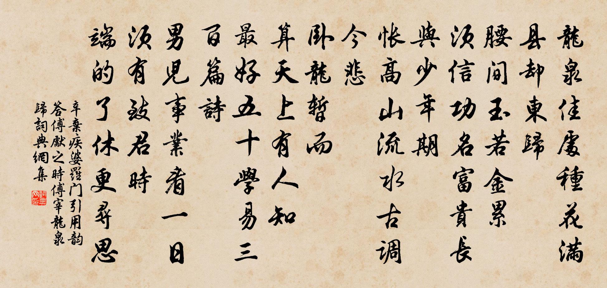 龍泉佳處,種花滿縣卻東歸。腰間玉若金累。