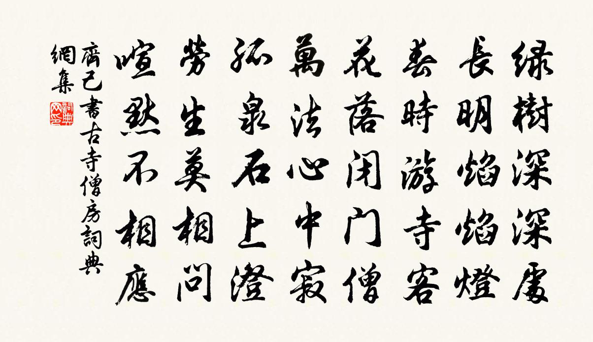 綠樹深深處,長明焰焰燈。春時游寺客,花落閉門僧。