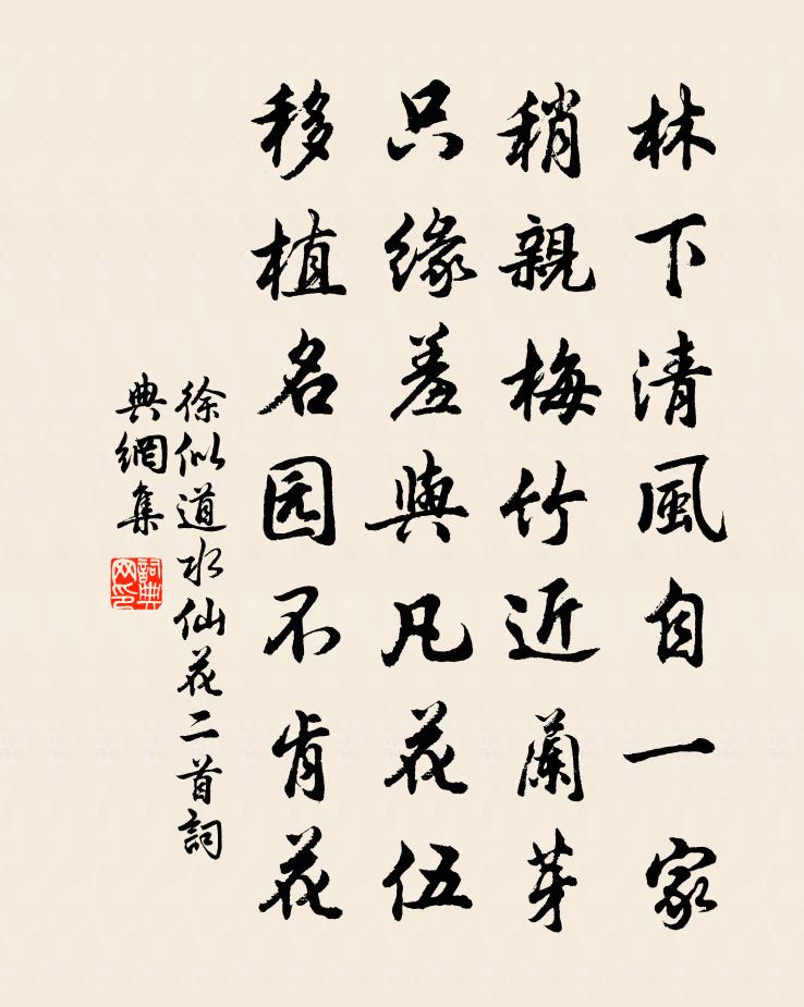 詩詞名句歷史字典書法欣賞書法字典國語詞典說文解字康熙字典古漢語字典標 題 作 者 詩 句 水仙花二首作者:徐似道 朝代:宋代水仙花二首原文林下清風自一家,稍親梅竹近蘭芽。只緣羞與凡花伍,移植名園不肯花。詩詞問答問:水仙花二首的作者是誰?答:徐似道問:水仙花二首寫於哪個朝代?答:宋代徐似道水仙花二首書法欣賞水仙花二首書法作品詩詞推薦和東坡送仲天貺王元直六言韻五首黃庭堅〔宋代〕天子文明浚哲,今年不次用人。九原埋此佳士,百草無情自春。藍田溪上楊時〔宋代〕夾籬桃李趁溪斜,淺淺清流映落花。欲問武陵源上路,度雲穿石認胡麻。黃鶴引方資〔宋代〕生逢垂拱。不識干戈免田隴。士林書圃終年,庸非天寵。才初闒茸。老去支離何用。浩然歸弄。似黃鶴、秋風相送夏口送屈突司直使湖南劉長卿〔唐代〕共悲來夏口,何事更南征。霧露行人少,瀟湘春草生。鶯啼何處夢,猿嘯若為聲。風月新年好,悠悠遠客情。簫李嶠〔唐代〕虞舜調清管,王褒賦雅音。參差橫鳳翼,搜尋動人心。□□□□□,□□□□□。□□□□□,□□□□□。喜雨四首張耒〔宋代〕陰陽不暫駐,今夕已秋風。晨興綿絲冷,歲月驚衰翁。朝煙爨薪濕,小甲蔬畦空。且復一杯酒,吾生不終窮。八聲甘州佚名〔宋代〕一團春雪,拋在玉爐中煎。炎炎進火不住添。要曉得通紅無焰煙。須管莫虧折,斤兩依然。如此三千。鍛鍊待不搖感禿鶖潛吟顧夐〔唐代〕昔日曾看瑞應圖,萬般祥瑞不如無。摩訶池上分明見,仔細看來是那鶘。曉意丘葵〔宋代〕鄰窗雞唱曉,客路馬嘶風。夜色鍾聲外,晨光角韻中。蟾歸曳殘白,烏出浴新紅。一點清明意,那無保養功。沁園春陳人傑〔宋代〕盡典書春衣,書換書津亭,送君此行。嘆清朝有道,何曾逐客,有司議法,忍及書生。歸去來兮,噫其甚矣,見說宮詞一百首岳珂〔宋代〕-蔥佳氣藹南都,共識強華赤伏符。地紀已占江渡馬,天心定見屋流鳥。花心動(落梅)黃子行〔宋代〕誰倚青樓,把謫仙長笛,數聲吹裂。一片乍零,千點還飛,正是雨晴時節。水晶簾外東風起,卷不盡、滿庭香雪,一剪梅侯善淵〔元代〕一個塵勞一個忙。一自別離,一得真常。一天精秀一天涼。一點清光。一帶凝陽。一氣相交一氣張。一結神丹,一左僕射相國冀公東齋幽居(同黎拾遺賦獻)岑參〔唐代〕丞相百僚長,兩朝居此官。成功雲雷際,翊聖天地安。不矜南宮貴,只向東山看。宅占鳳城勝,窗中雲嶺寬。午時潁橋路中別曼叔韓維〔宋代〕磷磷清潁流,中截兩崖斷。架橋在城底,斗出曠平漫。陰風無邊來,左右篷驚轉。我得感時節,跋馬重為戀。雖非頌一百則釋重顯〔宋代〕透綱金鱗,休去滯水。搖乾盪坤,振鬣擺尾。千尺鯨噴洪浪飛,一聲雷振清飆起。清飆起,天上人間知几几。入白水訪劉致中昆仲劉子翬〔宋代〕夜雨歇清曉,山椒雲氣昏。駕言聊出遊,窈窕窮川原。側帽避橫篠,揚祛障晴暾。春泉散石壁,細草羅丘園。陟峻題畫二首唐寅〔明代〕扶筇散步碧山游,萬壑千岩爽氣浮。一個茅薺如斗大,如何容得許多秋。過後唐莊宗廟寄曹殿帥貫道王詵〔宋代〕代梁繼李號良圖,卻惑歌兒便喪軀。試拂塵埃覘遺像,元來滿面是髭鬚。禁直偶作三首曹勛〔宋代〕聲藏禁柳鶯簧巧,香靄宮花鳳髓浮。不怕苑中歸騎晚,分光御燭下神州。名句推薦平皋行雁下,曲渚雙鳧出。崔元翰《奉和聖制重陽旦日百寮曲江宴示懷》 當關不報侵晨客,新得佳人字莫愁。李商隱《富平少侯》 賢者舉而上之,富而貴之,以為官長,不肖者抑而廢之。墨子《墨子·09章 尚賢(中)》 論至德者不和於俗,成大功者不謀於眾。司馬遷《史記·趙世家》 牛困人飢日已高,市南門外泥中歇。白居易《賣炭翁》 風日薄、度牆啼鳥聲亂。盧祖皋《宴清都·初春》 國破山河在,城春草木深。杜甫《春望》 野童扶醉舞,山鳥助酣歌。孟浩然《夏日浮舟過陳大水亭 / 浮舟過滕逸人別業》 天門中斷楚江開,碧水東流至此回。李白《望天門山》 月色燈山滿帝都,香車寶蓋隘通衢。李商隱《觀燈樂行》