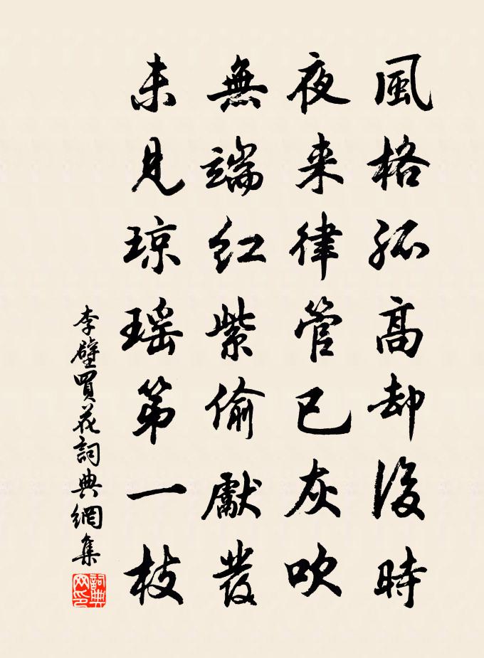 詩詞名句歷史字典書法欣賞書法字典國語詞典說文解字康熙字典古漢語字典標 題 作 者 詩 句 買花作者:李壁 朝代:宋代買花原文風格孤高卻後時,夜來律管已灰吹。無端紅紫偷先發,未見瓊瑤第一枝。詩詞問答問:買花的作者是誰?答:李壁問:買花寫於哪個朝代?答:宋代李壁買花書法欣賞買花書法作品詩詞推薦百字謠 海棠周權〔元代〕輕陰滯雨,正社燕新來,東風院落。十萬紅妝梳洗罷,翠袖春寒猶薄。富貴天姿,風流睡足,酒暈潮紅玉。個般艷次余靜庵晚望欲雪楊公遠〔宋代〕凝眸天欲莫,烏鵲認巢歸。萬竅號風急,千林脫葉稀。雲頑垂地暝,屋冷帶煙霏。默想滕郎意,商量剪水飛。臥龍潭陳范〔宋代〕半岩欲墮潭渚深。書陽不到竿陰陰。洞簫一曲瑤笙斷,千山萬雲水沉。跋江貫道絕筆古松張元乾〔宋代〕石根盤屈老蒼官,絕筆殷勤記歲寒。萬晨風雲欲飛化,君家留得壁間看。春山伴侶圖唐寅〔明代〕春山伴侶兩三人,擔酒尋花不厭頻。好是泉頭池上石,軟莎堪坐靜無塵。謁雲藍山先越公墓汪宗臣〔宋代〕此生未展雲藍墓,鬱郁甘棠孫子情。今度忽為寒食客,欣欣喬木歲時榮。堯天日月重光顯,越國江山幾變更。回首水調歌頭(丙午登白鷺亭作)周紫芝〔宋代〕歲晚念行役,江闊渺風煙。六朝文物何在,回首更悽然。倚盡危樓傑觀,暗想瓊枝璧月,羅襪步承蓮。桃葉山前鷺村舍陸游〔宋代〕露草乾時兒牧羊,朝日出時女採桑。一床絮被千萬足,不解城中有許忙。喜邵孟清風過晁公溯〔宋代〕樂居泰定山,豈減獨樂園。但恨山中翁,奄忽歸九原。我來不及識,風流被後昆。見爾眉骨似,驚嗟翁尚存。借問入若耶溪王籍〔南北朝〕艅艎何泛泛,空水共悠悠。陰霞生遠岫,陽景逐回流。蟬噪林逾靜,鳥鳴山更幽。此地動歸念,長年悲倦遊。偈頌一百二十三首釋普度〔宋代〕憶昔當年錯訪尋,被他用盡毒肝心。賺來賺到凌霄頂,火冷雲寒恨轉深。冤可解,不可結,必竟如今甚時節。打拳偈頌一百零一首釋慧性〔宋代〕萬壑千岩,雲霞鎖霧。洞然明白,覿面分付。雁影落寒潭,孤舟橫野渡。五更枕上黃虛舟〔宋代〕睡覺愁無奈,難禁冬夜長。才聽曉鍾動,又是世人忙。入市船撐月,朝天馬踏霜。布衾綿杲軟,切莫笑尋常。緣識宋太宗〔宋代〕元正享從此日,萬物鹹新利貞吉。送舊迎春一夜來,三元為首眾情得。萬彙潛臻俱是泰,玄化昭彰天作蓋。氣和玉鴛鴦湖棹歌 之八十七朱彝尊〔清代〕桑邊禾黍水重圍,時有秋蟲上客衣。 三過堂東開夕陽,滿村黃葉一僧歸。 和李邦直學士沂山祈雨有應蘇轍〔宋代〕宿雪雖盈尺,不救春夏旱。吁嗟遍野天不聞,歌舞通宵龍一戰。旋開雲霧布旌旗,復遣雷霆助舒捲。雨聲一夜洗塵享先農樂章。肅和佚名〔唐代〕樽彝既列,瑚簋方薦。歌工載登,幣禮斯奠。肅肅享祀,顒顒纓弁。神之聽之,福流寰縣。初入峽苦風寄故鄉親友陳子昂〔唐代〕故鄉今日友。歡會坐應同。寧知巴峽路。辛苦石尤風。偈頌一百二十三首釋祖欽〔宋代〕無解無結,猶是空中釘橛。有修有證,何異捕風捉月。皇帝閣端午帖子許應龍〔宋代〕卑服即康功,君王儉德隆。卻頒羅與葛,恩渥被群工。名句推薦別離還有經年客,悵望不如河鼓星。徐凝《七夕》 同心而離居,憂傷以終老。佚名《涉江采芙蓉》 竹邊荷外再相逢,又還是、浮雲飛去。趙以夫《鵲橋仙·富沙七夕為友人賦》 桑之未落,其葉沃若。佚名《氓》 北風吹雪四更初,嘉瑞天教及歲除。陸游《除夜雪》 貨盡而後知不足,是不知量也,事已,而後知貨之有餘,是不知節也管仲《管子·乘馬》 黑雲壓城城欲摧,甲光向日金鱗開。李賀《雁門太守行》 舊時王謝、堂前燕子,飛向誰家。吳激《人月圓·南朝千古傷心事》 已從招提游,更宿招提境杜甫《游龍門奉先寺》 錦江近西煙水綠,新雨山頭荔枝熟。張籍《成都曲》