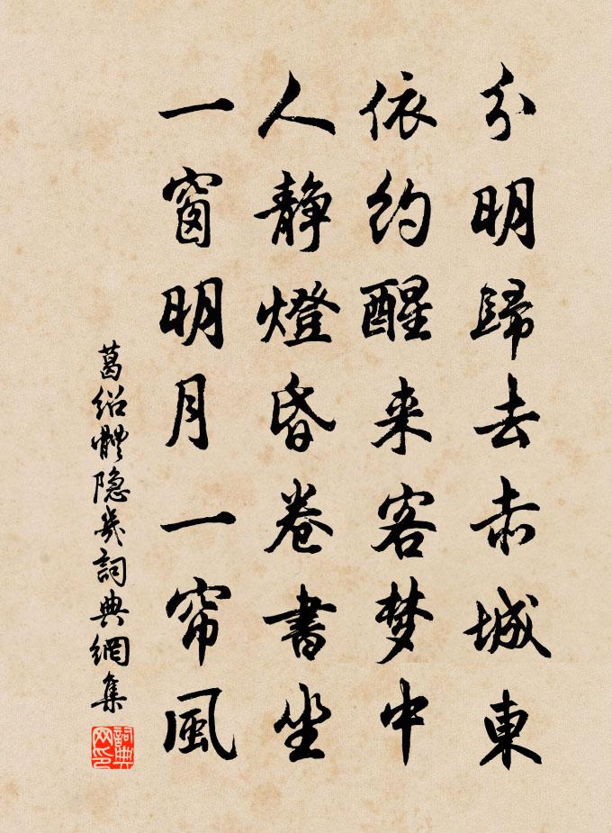 詩詞名句歷史字典書法欣賞書法字典國語詞典說文解字康熙字典古漢語字典標 題 作 者 詩 句 隱几作者:葛紹體 朝代:宋代隱几原文分明歸去赤城東,依約醒來客夢中。人靜燈昏卷書坐,一窗明月一簾風。詩詞問答問:隱几的作者是誰?答:葛紹體問:隱几寫於哪個朝代?答:宋代葛紹體隱几書法欣賞隱几書法作品詩詞推薦子京以長篇告別值予欲出一絕謝之陳文蔚〔宋代〕二年不作上方游,一日重尋舊話頭。卻恨嬋娟成兩處,清尊無分共中秋。雉李嶠〔唐代〕白雉振朝聲,飛來表太平。楚郊疑鳳出,陳寶若雞鳴。童子懷仁至,中郎作賦成。冀君看飲啄,耿介獨含情。封書元稹〔唐代〕鶴台南望白雲關,城市猶存暫一還。書出步虛三百韻,蕊珠文字在人間。句雲隱〔宋代〕刺分玉蛹堆盤脆,嚼破冰蠶饒齒涼。綠宮袍里素中單,全身卻作如來色。金橋感事吳融〔唐代〕太行和雪疊晴空,二月春郊尚朔風。飲馬早聞臨渭北,射鵰今欲過山東。百年徒有伊川嘆,五利寧無魏絳功。日暮覺際閒行鄭清之〔宋代〕斜逕轉山腰,平疇露稚苗。雲低松挾徑,雨足浪宣驕。宿鷺翔孤嶼,歸僧睨斷橋。倦余成小立,新月掛青霄。又次銛朴翁韻四首陳造〔宋代〕聞為詩魔掩貝多,辭源袞袞倒洪河。遙知傳誦日千紙,淇上高唐無善歌。金陵覽古後湖朱存〔唐代〕雷轟疊鼓火翻旗,三翼翩翩試水師。驚起黑龍眠不得,狂風猛雨下多時。墨梅趙葵〔宋代〕須知造物元無物,剛被花光強造端。認得色空都是幻,南枝非暖北枝寒。次韻周德夫經行不相見之詩黃庭堅〔宋代〕春風倚樽俎,緣發少年時。酒膽大如斗,當時淮海知。醉眼概九州,何嘗識憂悲。看雲飛翰墨,秀句詠蛛絲。樂如薊北書事張蠙〔唐代〕度磧如經海,茫然但見空。戍樓承落日,沙塞礙驚蓬。暑過燕僧出,時平虜客通。逢人皆上將,誰有定邊功。草衣文殊贊釋智遇〔宋代〕是何等書,讀不成句。榱短髮長,手鄶俱露。穗粟張嵲〔宋代〕世亂棄祿仕,居閒食苦貧。置田上庸山,稍依農畝鄰。歲入無幾何,誅求方荐臻。老農幸導我,播植當自勤。晨起摸魚兒(辛巳自壽年五十)劉辰翁〔宋代〕是耶非、吾年如此,更痴更悔今昨。狂吟近日疏於酒,轉似秋山瘦削。渾未覺。恁兒子門生,前度登高弱。情懷又曉登靈梵寺閣二首張嵲〔宋代〕晨氣霧露除,初日照高閣。青山偪歲昏,碧樹霜余落。俯澗愛鳴泉,臨郊美華薄。幽情欻自欣,鄉念頻成愕。且寄憶北山送勝上人王安石〔宋代〕蒼藤翠木江南山,激激流水兩山間。山高水深魚鳥樂,車馬跡絕人長閒。雲埋樵聲隔蔥蒨,月弄釣影臨潺湲。黃塵聲聲慢(送王聖與次韻)周密〔宋代〕瓊壺歌月,白髮簪花,十年一夢揚州。恨入琵琶,小憐重見灣頭。尊前漫題金縷,奈芳情、已逐東流。還送遠,甚山丹花楊萬里〔宋代〕春去無芳可得尋,山丹最晚出雲林。柿紅一色明羅袖,金粉群蟲集寶簪。花似鹿匆還耐久,葉如芍藥不多深。青泥十九日甲戌晴己卯晚又雨二首方回〔宋代〕稍復橋痕舊,俄驚礎汗非。豈宜真洶湧,止可略霏{上雨下微}。河伯毋流毒,雲師幸霽威。劣能驅暑氣,即願吐玩迎春花贈楊郎中白居易〔唐代〕金英翠萼帶春寒,黃色花中有幾般?憑君與向遊人道,莫作蔓菁花眼看。名句推薦違山十里,蟪蛄之聲,猶在於佚名《孔子家語·子路初見》 積雪覆平皋,飢鷹捉寒兔。孟浩然《南歸阻雪》 目送征鴻飛杳杳,思隨流水去茫茫。孫光憲《浣溪沙·蓼岸風多橘柚香》 內官初賜清明火,上相閒分白打錢。韋莊《長安清明》 悽惻近長沙,地僻秋將盡楊冠卿《卜運算元·秋晚集杜句吊賈傅》 晨必盥,兼漱口。便溺回,輒淨手。李毓秀《弟子規·謹》 數州訊息斷,愁坐正書空。杜甫《對雪》 春遊浩蕩,是年年、寒食梨花時節。丘處機《無俗念·靈虛宮梨花詞》 美女渭橋東,春還事蠶作。李白《陌上桑》 何當金絡腦,快走踏清秋。李賀《馬詩二十三首》