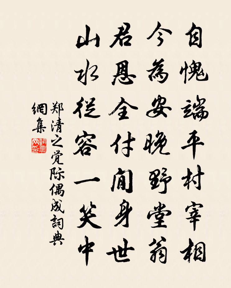 詩詞名句歷史字典書法欣賞書法字典國語詞典說文解字康熙字典古漢語字典標 題 作 者 詩 句 覺際偶成作者:鄭清之 朝代:宋代覺際偶成原文自愧端平村宰相,今為安晚野堂翁。君恩全付閒身世,山水從容一笑中。詩詞問答問:覺際偶成的作者是誰?答:鄭清之問:覺際偶成寫於哪個朝代?答:宋代鄭清之覺際偶成書法欣賞覺際偶成書法作品詩詞推薦和陶淵明二十首陳造〔宋代〕自公有至樂,詩卷還坐隅。得句一吐之,嬉然忘窮塗。百世一俯仰,萬象付馳驅。吟情當飲興,其樂皆有餘。憶京雒木芍藥三絕蘇籀〔宋代〕熟美酣馨迸佳瑞,暈棱紅碧化神工。根株肇自韓郎染,葩蘤人間一洗空。滴翠松黃庚〔宋代〕老翠蟠空一樣高,月分寒影落庭皋。喔詩猛把闌乾拍,宿鶴驚飛露濕袍。朝陽穿破衲釋師範〔宋代〕橫片豎片胡亂搭,長針短針信意聯。但見日頭東畔出,不知塵世是何年。見李蘇州示男阿武詩自感成詠白居易〔唐代〕遙羨青雲里,祥鸞正引雛。自憐蒼海畔,老蚌不生珠。霜天曉角程垓〔宋代〕幾夜鎖窗揭。素蟾光似雪。恰恨照人欹枕,紗櫥爽、簟紋滑。迤邐篆香裛。好壞誰共說。若是知人風味,來分取、白起徐鈞〔宋代〕投降趙卒本求生,坑後誰人不死爭。三召三辭寧自刎,邯鄲料不再長平。山中喻峙〔宋代〕我是山中萬戶侯,明知騎馬勝騎牛。晚來馬上看山色,不似騎牛得自由。題潘察院竹園壁白玉蟾〔宋代〕夜雨洗開千翡翠,春風撼碎萬琅玕。滿林鴉鵲臥明月,鐵笛一聲煙正寒。和孫廷平坦嵩山十首寒溪石韓維〔宋代〕寒溪水痕落,怪石千萬狀。須防游屐滑,不礙釣舟漾。安得平若席,臥看孤月上。郡齋感秋,寄諸弟韋應物〔唐代〕首夏辭舊國,窮秋臥滁城。方如昨日別,忽覺徂歲驚。高閣收煙霧,池水晚澄清。戶牖已淒爽,晨夜感深情。昔游送月上人歸鄉釋正覺〔宋代〕西風木落山露骨,秋月在水波濯魂。客意歸臥四明麓,三世佛從禪口吞。大千俱壞我不壞,三六相昏渠不昏。劫空【南呂】一枝花_自序醜齋生鍾嗣成〔元代〕自序醜齋生居天地間,稟受陰陽氣。既為男子體,須入世俗機。所事堪宜,件件可咱家意。子為評跋上惹是非。折孟嘉徐鈞〔宋代〕廣坐人中便識真,德容言貌每相因。龍山落帽相嘲論,引得文章壓世人。自笑陸游〔宋代〕自笑謀生事事疏,年來錐與地俱無。平章春韭秋菘味,拆補天吳紫鳳圖。食肉定知無骨相,珥貂空自逛頭顱。惟余抒懷張蠙〔唐代〕幾齣東堂謝不才,便甘閒望故山回。翻思未是離家久,更有人從外國來。壬辰三月二十一日讀李翰林墓銘雲以任俠為事王令〔宋代〕嗟吾為顓蒙,木朴無所思。成童始就學,數歲通書詩。十五尚意氣,自待固不卑。嘗為富貴易,有如塗上泥。苟意和龔聖任冬日即事王之道〔宋代〕老怯繁霜勁,閒憐愛日溫。禦寒朝強酒,防寇夜撐門。采薺籬根地,觀梅郭外春。餘生何所託,歸命大慈尊。次韻楊廷秀太和萬安道中所寄七首趙蕃〔宋代〕愛竹知人憶故山,食貧過午尚懸簞。長篇乞與小詩並,要似韓豪東野寒。謁金門(送徐子宜如新安)陳亮〔宋代〕新雨足。洗盡山城袢褥。見說好峰三十六。峰峰如立玉。四海英游追逐。事業相時伸縮。入境德星須做福。只愁金名句推薦萬物迎春送殘臘,一年結局在今宵。戴復古《除夜》 雨中禁火空齋冷,江上流鶯獨坐聽。韋應物《寒食寄京師諸弟》 香聞流水處,影落野人家。道源《早梅》 中秋佳月最端圓。老痴頑。見多番。陳著《江城子·中秋早雨晚晴》 雨色秋來寒,風嚴清江爽。李白《酬裴侍御對雨感時見贈》 賞心樂事共誰論?花下銷魂,月下銷魂。唐寅《一剪梅·雨打梨花深閉門》 誰憐旅愁荏苒。謾長門夜悄,錦箏彈怨。張炎《解連環·孤雁》 穿天透地不辭勞,到底方知出處高。馮雲山《詠瀑布》 日落君山雲氣,春到沅湘草木,遠思渺難收。張孝祥《水調歌頭·過岳陽樓作》 曉看天色暮看雲,行也思君,坐也思君。唐寅《一剪梅·雨打梨花深閉門》