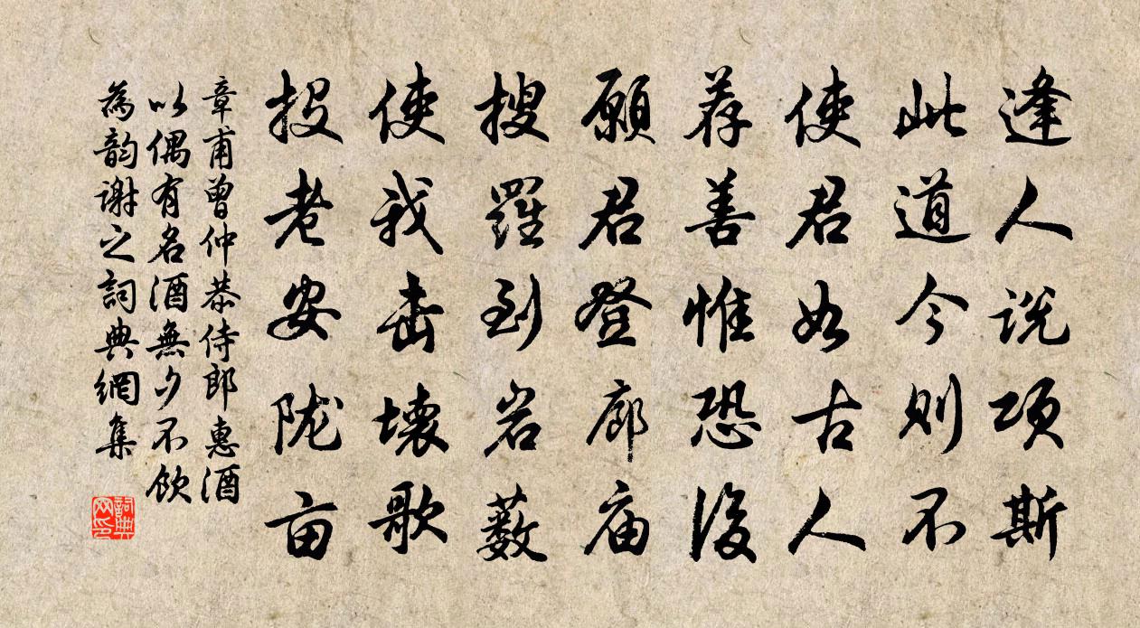 詩詞名句歷史字典書法欣賞書法字典國語詞典說文解字康熙字典古漢語字典標 題 作 者 詩 句 曾仲恭侍郎惠酒以偶有名酒無夕不飲為韻謝之作者:章甫 朝代:宋代原文逢人說項斯,此道今則不。使君如古人,薦善惟恐後。願君登廊廟,搜羅到岩藪。使我擊壞歌,投老安隴畝。詩詞問答問:《曾仲恭侍郎惠酒以偶有名酒無夕不飲為韻謝之》的作者是誰?答:章甫問:該詩寫於哪個朝代?答:宋代書法欣賞曾仲恭侍郎惠酒以偶有名酒無夕不飲為韻謝之書法作品詩詞推薦偶題翁卷〔宋代〕綠樹何稠疊,清風稍羨餘。枕縈雲片片,簾透雨疎疎。修筧通泉壑,殘碑出野鋤。丘陵知幾變,耕稼學陶漁。望金陵晁補之〔宋代〕龍盤虎踞望南津,餘烈崢嶸尚霸陳。醉著不知風揭屋,可能楊素是江神。寄題雲屋趙資敬啟蒙亭風雩亭二首方回〔宋代〕坤三變艮山,天一生坎泉。注谷未浩浩,滴石初涓涓。君子觀厥象,有若重稚然。更歷幾險阻,然後為巨川。始教相和歌辭。昭君詞戴叔倫〔唐代〕漢宮若遠近,路在沙塞上。到死不得歸,何人共南望。湖上賦陸游〔宋代〕清絕追涼地,平生得未曾。似嘗仙掌露,如嚼玉壺冰。狂學菱舟曲,閒尋竹院僧。更思生羽翼,散發醉巴陵。維揚懷古曾棨〔明代〕廣陵城裡昔繁華,煬帝行宮接紫霞。玉樹歌殘猶有曲,錦帆歸去已無家。樓台處處迷芳草,風雨年年怨落花。最是春晚二首葉茵〔宋代〕胡蝶夢中意,杜鵑聲外愁。問春春不語,柳絮暗汀洲。金明池游梅堯臣〔宋代〕三月花天池上,花都人袨服花多。水明花搖碧玉,岸響集靈鼉。畫舸龍延尾,長橋霓飲波。苑光花粲粲,女齒笑瑳贈會稽楊長官方乾〔唐代〕直鉤終日竟無魚,鐘鼓聲中與世疏。若向湖邊訪幽拙,蕭條四壁是閒居。偈三首釋宗頤〔宋代〕新羅別無妙訣,當言不避截舌。但能心口相應,一生受用不徹。宣城琴高之名甚著轉送四方甚珍品也比得之乃錢時〔宋代〕春網琴高長藋茅,宣城風物剩浮誇。蜀溪歲歲桐魚工,堪恨無人喚藥查。和曾丈贈光作令趙元質王之望〔宋代〕奔波朝士覓官忙,獨買扁舟去意長。汲黯舊聞羞作令,馮唐今愧老為郎。鵷鴻引去知何慕,鷗鷺歸來不亂行。竊食嚴十八郎中在郡日改制東南樓因名清輝未立標榜…寄嚴白居易〔唐代〕嚴郎置茲樓,立名曰清輝。未及署花榜,遽征還粉闈。去來三四年,塵土登者稀。今春新太守,灑掃施簾幃。院柳題資福院石井潘閬〔宋代〕炎炎畏日樹將焚,卻恨都無一點雲。強跨蹇驢來得到,皆疑渴殺老參軍。宮詞宋白〔宋代〕天玉風清北內聞,東朝相慶冊儲君。春坊曉奏元良瑞,雞戟門西現彩雲。與僧淨璋陸九淵〔宋代〕自從相見白雲間,離聚常多會聚艱。兩度逢迎當汝水,數年隔闊是曹山。客來濯足傍僧怪,病不烹茶侍者閒。不是十暑朱繼芳〔宋代〕十暑江湖客,塵緇白苧衫。人沿沙島路,風卷海門帆。帶雨廚煙重,通潮井脈鹹。家書言不盡,重拆又重緘。惜黃花王哲〔元代〕大仙師父。常來救苦。且作凡間人、說些宗祖。地下一聲雷,震動山頭雨。怎知道、鐵牛耕土。坎離並子午。擒龍演史釋普濟〔宋代〕干戈場是太平基,休把英雄較是非。試問長空風與月,周秦漢魏不曾知。分題得莫氏荷池袁甫〔宋代〕我老貧無居,借宅橫水北。軒窗五月涼,四面繞修竹。方塘貯清泉,綠淨蔭湖目。初疑青錢小,稍展圓蓋綠。紅妝名句推薦絡緯秋啼金井闌,微霜淒淒簟色寒。李白《長相思·其一》 太平本是將軍定,不許將軍見太平。施耐庵《水滸傳·第一百一十四回》 舞低楊柳樓心月,歌盡桃花扇底風。晏幾道《鷓鴣天·彩袖殷勤捧玉鍾》 柳葉開銀鏑,桃花照玉鞍。駱賓王《送鄭少府入遼共賦俠客遠從戎》 落梅庭榭香,芳草池塘綠。晏幾道《生查子·落梅庭榭香》 黃蘆掩映清江下,斜纜著釣魚艖。關漢卿《大德歌·冬景》 大漠風塵日色昏,紅旗半卷出轅門。王昌齡《從軍行七首》 渡口雙雙飛白鳥,煙裊,蘆花深處隱漁歌。閻選《定風波·江水沉沉帆影過》 他鄉生白髮,舊國見青山。司空曙《賊平後送人北歸》 顛狂柳絮隨風去,輕薄桃花逐水流。杜甫《絕句漫興九首·其五》