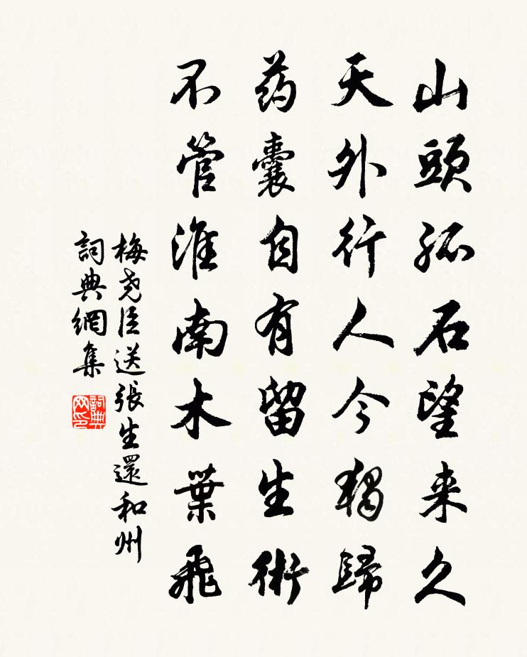 山頭孤石望來久,天外行人今獨歸。藥囊自有留生術,不管淮南木葉飛。