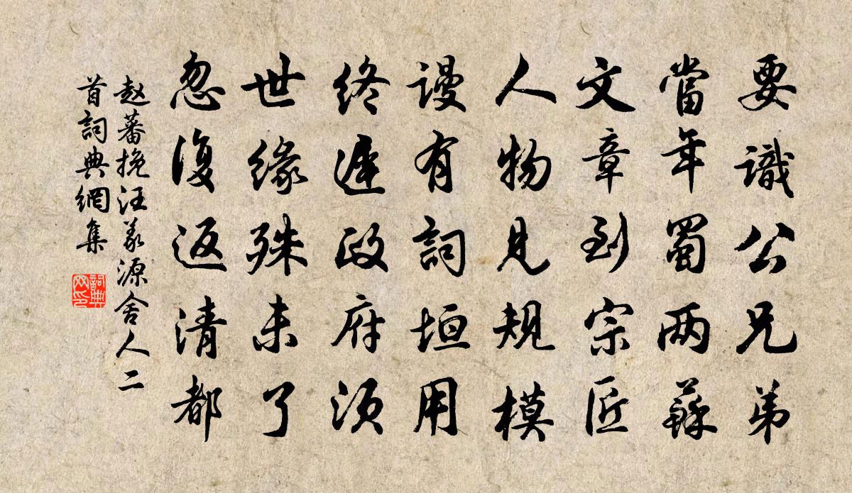 詩詞名句歷史字典書法欣賞書法字典國語詞典說文解字康熙字典古漢語字典標 題 作 者 詩 句 挽汪義源舍人二首作者:趙蕃 朝代:宋代挽汪義源舍人二首原文要識公兄弟,當年蜀兩蘇。文章到宗匠,人物見規模。謾有詞垣用,終遲政府須。世緣殊未了,忽復返清都。詩詞問答問:挽汪義源舍人二首的作者是誰?答:趙蕃問:挽汪義源舍人二首寫於哪個朝代?答:宋代趙蕃挽汪義源舍人二首書法欣賞挽汪義源舍人二首書法作品詩詞推薦雨花台羅必元〔宋代〕蕭帝傾心向佛家,謾言天女墜天花。蘆僧一葉橫江去,回首梁園日腳斜。次韻秋日禪房周必大〔宋代〕官閒未覺往來妨,疏懶從公意自長。松柏有心寒始見,芝蘭入室久彌香。送秋容我無何飲,畦夏憐渠有底忙。霜倒雨中看牡丹三首蘇軾〔宋代〕幽姿不可惜,後日東風起。酒醒何所見,金粉抱青子。千花與百草,共盡無妍鄙。未忍污泥沙,牛酥煎落蕊。句陳恬〔宋代〕雪晨消磨一半春。病後夏初雜書近況十首方回〔宋代〕今年春夏極窮忙,日檢醫書校藥方。甫得木瓜治膝腫,又須荊芥沐頭瘍。一生辛苦身多病,四至平和脈尚強。壽及盧申之載酒舟中分韻得明字趙師秀〔宋代〕閒人閒處住,載酒荷高情。小舍寧容客,同舟卻向城。弄花忘晝暑,憂谷念秋晴。歸路雖無月,銀河亦自明。鷓鴣天葛郯〔宋代〕萬木家園霧暗津。不須踏影下前村。須知苕霅水雲窟,自有羅浮冰雪魂。橫水館,倚樓門。參旗有約共黃昏。此中和虞滄江見寄宴坐聞秋香吳泳〔宋代〕春芳如麗人,驕色不肯除。秋芳如高士,一味甘恬虛。我闥本洞然,香負來虛徐。滋蘭露承掌,延桂月滿裾。門巷和趙觀使喜雨吳芾〔宋代〕膏澤愆時愧已深,敢期誠意達天垠。片雲忽送千峰雨,一氣潛回萬壑春。頓覺老農生喜色,坐令凶歲變佳辰。憂民弟子簿堅仁以幅縑寫圓悟禪師像徑山裕虎丘隆釋正覺〔宋代〕力世佛宗,心傳我公。一拳活計,一喝家風。影草呈機也三聖卻瞎,精金出冶也百丈還聾。綽綽有裕,恢恢而隆。溫泉羅鄴〔唐代〕一條春水漱莓苔,幾繞玄宗浴殿回。此水貴妃曾照影,不堪流入舊宮來。詠銅柱佚名〔唐代〕天門街里倒天樞,火急先須卸火珠。計合一條絲線挽,何勞兩縣索人夫。涼州令/梁州令歐陽修〔宋代〕翠樹芳條颭。的的裙腰初染。佳人攜手弄芳菲,綠陰紅影,共展雙紋簟。插花照影窺鸞鑑。只恐芳容減。不堪零落書林十景詩謝枋得〔宋代〕攜鋤鑿破南山雲,種來修竹凌青冥。參天引風挺蒼玉,匝地印月篩黃金。清瘦何妨惟卻俗,淨掃胸中塵萬斛。何當龍陽縣歌劉禹錫〔唐代〕縣門白日無塵土,百姓縣前挽魚罟。主人引客登大堤,小兒縱觀黃犬怒。鷓鴣驚鳴繞籬落,橘柚垂芳照窗戶。沙平偈頌一百二十三首釋祖欽〔宋代〕曉天月白,古岸舟橫。一陽來復,吾道大亨。詠月羅隱〔唐代〕湖上風高動白蘋,暫延清景此逡巡。隔年違別成何事,半夜相看似故人。蟾向靜中矜爪距,兔隈明處弄精神。嫦娥謁趙徽猷鄧深〔宋代〕把麾持節舊鄉關,雖幸為眠一枕安。未睹青天孤此眼,不圖今日見公顏。雲煙秋霽湖山靜,霜月晨清橘柚寒。應屬蝶戀花佚名〔宋代〕問訊梅花開也未。孕雪■香,春在寒梢尾。試與折來供一醉。壽鄉容與生春意。律轉黃鐘霜小霽。月姊乘鸞,伴我訴衷情韋莊〔唐代〕碧沼紅芳煙雨靜,倚蘭橈。垂玉佩,交帶,裊纖腰。鴛夢隔星橋,迢迢。越羅香暗銷,墜花翹。名句推薦千里孤墳,無處話淒涼。蘇軾《江城子·乙卯正月二十日夜記夢》 試澆橋下水,今夕到湘中。陳與義《臨江仙·高詠楚詞酬午日》 尺之木必有節目,寸之玉必有瑕適。呂不韋《呂氏春秋·覽·離俗覽》 國者、天下之大器也,重任也荀子《荀子·王霸》 染柳煙濃,吹梅笛怨,春意知幾許。李清照《永遇樂·落日熔金》 玉人初上木蘭時。懶妝斜立澹春姿。吳文英《浣溪沙·題李中齋舟中梅屏》 目妄視則淫,耳妄聽則惑,口妄言則亂。劉安及其門客《淮南子·主術訓》 望天王降詔,早招安,心方足。宋江《滿江紅·喜遇重陽》 西風酒旗市,細雨菊花天。歐陽修《秋懷》 睡起莞然成獨笑,數聲漁笛在滄浪。蔡確《夏日登車蓋亭》