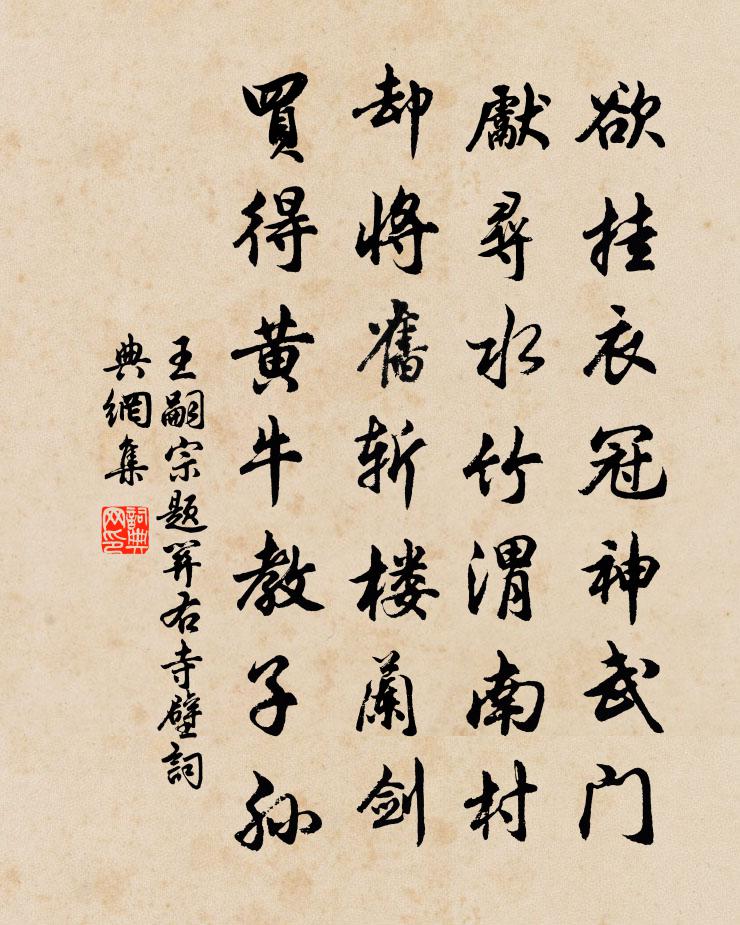 詩詞名句歷史字典書法欣賞書法字典國語詞典說文解字康熙字典古漢語字典標 題 作 者 詩 句 題關右寺壁作者:王嗣宗 朝代:宋代題關右寺壁原文欲掛衣冠神武門,先尋水竹渭南村。卻將舊斬樓蘭劍,買得黃牛教子孫。詩詞問答問:題關右寺壁的作者是誰?答:王嗣宗問:題關右寺壁寫於哪個朝代?答:宋代王嗣宗題關右寺壁書法欣賞題關右寺壁書法作品詩詞推薦次蒲尉韻李石〔宋代〕斯言誠虛筌,遮眼漫盈紙。冷暖當自知,此味如飲水。誰肯落驕榮,還來共枯悴。待渠轉船頭,著力與風值。最憐南歌子·懶拂鴛鴦枕溫庭筠〔唐代〕懶拂鴛鴦枕,休縫翡翠裙。羅帳罷爐熏。近來心更切,為思君。滿庭芳 贈辛五翁姜四翁馬鈺〔元代〕豪富過人,作為異眾,萊陽姜鑒辛通。文登趁醮,不憚冒霜風。來往近乎千里,投壇告、馬鈺姜公。持孝道,宰公詠懷阮籍〔魏晉〕炎光延萬里,洪川盪湍瀨。彎弓掛扶桑,長劍倚天外。泰山成砥礪,黃河為裳帶。視彼莊周子,榮枯何足賴?捐身寒食城東即事王維〔唐代〕清溪一道穿桃李,演漾綠蒲涵白芷。溪上人家凡幾家,落花半落東流水。蹴踘屢過飛鳥上,鞦韆競出垂楊里。少年採桑李石〔宋代〕籠鉤在手茜裙襦,蠶老風暄日欲晡。我是採桑菩薩女,不煩下擔捋髭鬚。落梅趙時韶〔宋代〕鹿胎點點上輕裘,腦片飄飄入寶篝。更向佳人妝額看,梅花到底也風流。病中招孫醫士彭龜年〔宋代〕冬冬才動熱蒸蒸,直到更初漸漸清。臓腑始堅今反利,痰涎愈盛氣難平。形容凋瘦真如鬼,耳目聰明粗似人。自是登鸛雀樓耿湋〔唐代〕久客心常醉,高樓日漸低。黃河經海內,華岳鎮關西。去遠千帆小,來遲獨鳥迷。終年不得意,空覺負東溪。揚州送人劉綺莊〔唐代〕桂楫木蘭舟,楓江竹箭流。故人從此去,望遠不勝愁。落日低帆影,歸風引棹謳。思君折楊柳,淚盡武昌樓。次韻杏花三首王安石〔宋代〕看時高艷先驚眼,折處幽香易滿懷。野女強簪看亦醜,少教憔悴逐荊釵。釋奠詩應令江總〔隋代〕希代明王。應期聖主。裁成品物。奄有區宇。篇籍芬場。尉書照府。籠猌七十。驅馭三五。次韻王鞏留別蘇轍〔宋代〕決策歸田豈世情,網羅從此脫餘生。請君速治雞黍具,待我同為沮溺耕。秋社相從醵錢飲,日高時作叩門聲。茅廬禪人寫師真請贊釋慧遠〔宋代〕大地一渾身,虛空絕四鄰。不識柏樹子,喚作麻三斤。好時十分瀟灑,惡時一味藞苴。等閒牽犁上佛殿,乘興缽盂田家即事祖詠〔唐代〕舊居東皋上,左右俯荒村。樵路前傍嶺,田家遙對門。歡娛始披拂,愜意在郊原。餘霽盪川霧,新秋仍晝昏。攀條送任處士歸太原歐陽修〔宋代〕一虜動邊陲,用兵三十萬。天威豈不嚴,賊首猶未獻。自古王者師,有徵而不戰。勝敗系人謀,得失由廟算。是以秋日雜興二首羅椅〔宋代〕躍魚甚微細,解轉達秋江漪。一靜未滿刻,一動輒移時。豈由魚樂乎,或是不性之。商量未渠穩,風急蘆花低。知府石太尉閒抱瑤琴榮臨圭竇燒筍供膳刻竹題魏野〔宋代〕筍就林燒厭八珍,煙為翠幙草為茵。功臣名姓留何處,自把金刀刻翠筠。上帥漕閔雨十首彭龜年〔宋代〕白粲十萬艘,日夜隨東流。常平貫雖朽,還作蘇民不。鷓鴣天·和昌父辛棄疾〔宋代〕萬事紛紛一笑中。淵明把菊對秋風。細看爽氣今猶在,惟有南山一似翁。情味好,語言工。三賢高會古來同。誰知名句推薦春風爾來為阿誰,蝴蝶忽然滿芳草。李白《山人勸酒》 凡出言,信為先。詐與妄,奚可焉?李毓秀《弟子規·信》 他年我若為青帝,報與桃花一處開。黃巢《題菊花》 春風來不遠,只在屋東頭。于謙《除夜太原寒甚》 西風潑眼山如畫,有黃花休恨無錢。張可久《風入松·九日》 水色淥且明,令人思鏡湖。李白《登單父陶少府半月台》 相思難表,夢魂無據,惟有歸來是。歐陽修《青玉案·一年春事都來幾》 復恐匆匆說不盡,行人臨發又開封。張籍《秋思》 城外蕭蕭北風起,城上健兒吹落耳。劉基《北風行》 乖僻自是,悔誤必多;頹惰自甘,家道難成。朱柏廬《朱子家訓·全文》