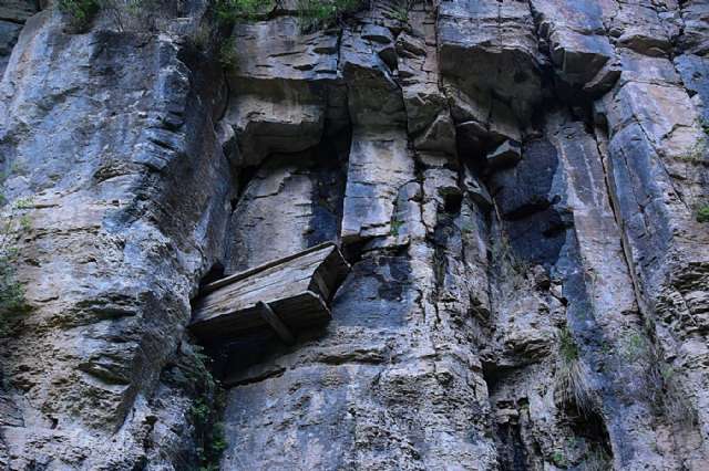棺葬式是一種處置死者屍骨的特殊方式,在我國主要分布於古代南方少數民族地區。這種富有深厚文化涵容的懸棺葬式,存在著許多令今人無法解釋的困惑之處。比如,遠古時代的人們到底是用什麼辦法把裝有屍體和隨葬物品、重達數百公斤的棺木送進高高的崖洞裡去的,就是一個令人“難以捉摸”的問題。