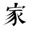 【說文】從宀,豭省聲。周伯溫曰:豕居之圈曰家,故從宀從豕。後人借爲室家之家。○按《六書故》作①,人所合也。從㐺,三人聚宀下,①之義也。乑古族字,乑譌爲豕,《說文》謂從豭省,無義。①字從宀從㐺,或從宀從乑。乑字從亻從人人,與㐺形近。又𡦼。