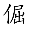 國語字典說文解字古漢語字典國語詞典廣韻字典近義詞字典網>> 康熙字典>> 倔康熙字典線上查詢 倔注音:ㄐㄩㄝˊ ㄐㄩㄝˋ 部首:亻 讀音為:單人旁兒(dānrénpángér) 單立人兒(dānlìrénér)拼音:jué juè倉頡:OSUU 五筆編碼:WNBM筆劃:共 10 劃 康熙字典筆劃:倔:10;分解查字:亻屈(renqu) 異體字:誳康熙字典【子集中】【人字部】倔【廣韻】衢物切【集韻】【韻會】【正韻】渠勿切,𠀤音崛。梗戾貌。【宋史·趙鼎傳】鼎不附和議,檜曰:此老倔強猶昔。通作屈彊。“倔”在國語字典中的解釋“倔”書法欣賞其它康熙字典查詢匷 㵐 鈌 觮 蟩 厥 玦 觖 攫 趹 決 㩱 䙠 爵 瘚