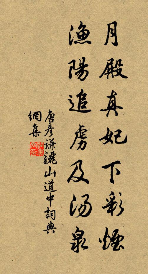 古詩文歷史字典書法欣賞書法字典國語詞典說文解字康熙字典古漢語字典月殿真妃下彩煙,漁陽追虜及湯泉唐彥謙 《驪山道中》名句出處出自唐代唐彥謙的《驪山道中》全文:月殿真妃下彩煙,漁陽追虜及湯泉。君王指點新豐樹,幾不親留七寶鞭。唐彥謙詩詞大全名句書法欣賞月殿真妃下彩煙,漁陽追虜及湯泉書法作品唐彥謙名句,驪山道中名句名句推薦陰雲將變雪,寒水不成潮釋文珦《客中會友》金牛開道秦川險,笮馬來賓漢使遙祖無擇《送潘華陽》漢殿藏鉤戲,戎家守歲時胡仲弓《除夕寄弟》心間好隱忘言幾,官冷宜鋪坐客氈蘇頌《次韻柳郎中二詠》花卻有情人薄倖歐陽修《漁家傲》范蠡歸湖識進退,見越主昏迷佚名《【雙調】一綻銀》如今更有將軍否,移取潼關向北來孟遲《新安故關》一氣無窮極,三才妙更深宋太宗《逍遙詠》忻忻笑語喧閭閻,言此豐歲將飫饜蘇頌《首夏即事與丘與權同韻作》金縷深深勸客,雕梁蔌蔌飛塵侯置《西江月(贈蔡仲常侍兒初嬌)》下手弄,激電光中看變動釋正覺《頌古一百則》長樂鍾聲攪夢驚,建章星影照人行楊萬里《冬至稱賀皇太子平陽郡王》與子雖天意,知人昔帝難歐陽修《永昭陵輓詞三首》自高聲勢敘邊功,歲歲年年皆一同文同《五原行》羽檄時主急,文才用有餘薛師石《送子舒弟赴金陵兼柬宋君輔》詩詞推薦南康望湖亭(一本雲過洞庭)蘇軾〔宋代〕八月渡長湖,蕭條萬象疏。秋風片帆急,暮藹一山孤。許國心猶在,康時術已虛。岷峨家萬里,投老得歸無。題新泉晁說之〔宋代〕舍北洗山如有待,舍南泉發本無期。羇愁盡落清音里,不用騫公讀楚辭。巾山薛師石〔宋代〕兩峰爭起入雲層,半屬虛空半屬僧。斜日滿山人到少,任蕃去後我來登。八月十五日夜玩月劉禹錫〔唐代〕天將今夜月,一遍洗寰瀛。暑退九霄淨,秋澄萬景清。星辰讓光彩,風露發晶英。能變人間世,翛然是玉京。趙處州輓詩王炎〔宋代〕白首來苕霅,深知有故人。登門雖不數,傾蓋本相親。浮鷁行方遠,烹魚默尚新。青山埋玉樹,老淚漫沾巾。立春武衍〔宋代〕蓼滴辛盤色斗鮮,已將春到酒尊前。金幡不用吳娃祝,自唱新詞插鬢邊。桐柏觀夏竦〔宋代〕鳥道寒藤結,洞門蒼蘚深。樓台在山畔,松檜出雲心。土暖春長在,峰高月易沉。羽衣祠太乙,香冷石壇陰。遣興二首張嵲〔宋代〕人生何必論才良,賢否窮通脫未量。運否較龍猶蠖屈,時來鳥雀亦鷹揚。王侯螻蟻同歸盡,鐘鼎山林各所藏。何用洞仙歌范成大〔宋代〕碧城風物,有湖中天地。長笑羲娥不停軌。記蟠桃枝上,金母嗔嘗,回首處,還又三千歲矣。料仙人拊頂,曾授長與高安劉丞游大愚觀壁間兩蘇先生詩陸游〔宋代〕野性縱壑魚,官身墜阱虎。適得建溪春,頗意松下釜。微霜初變寒,短景已過午。佳客能聯翩,老宿相勞苦。懷哉