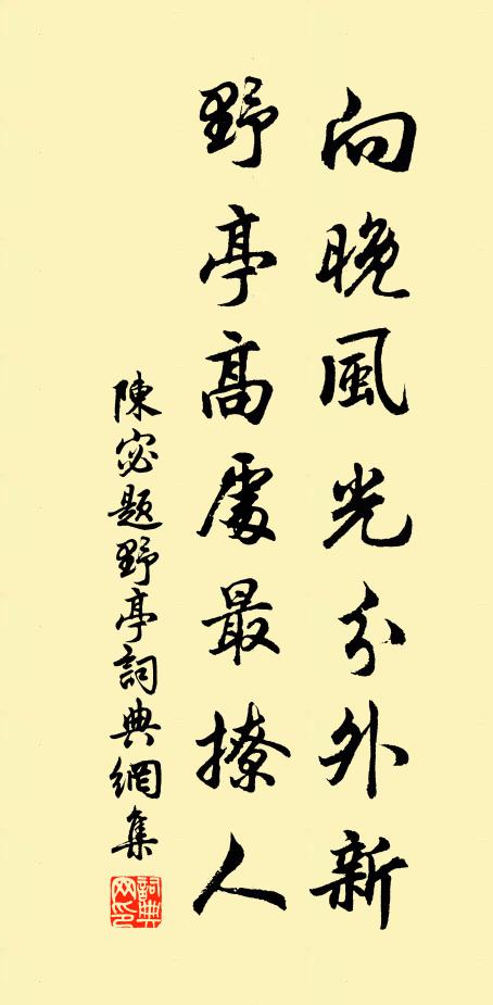 古詩文歷史字典書法欣賞書法字典國語詞典說文解字康熙字典古漢語字典向晚風光分外新,野亭高處最撩人陳宓 《題野亭》名句出處出自宋代陳宓的《題野亭》全文:向晚風光分外新,野亭高處最撩人。綢繆翠袖分還合,委曲寒波去轉親。小艇時過明鏡里,危欄獨倚畫圖身。公餘對此長懷愧,檢點胸中未洗塵。名句書法欣賞向晚風光分外新,野亭高處最撩人書法作品陳宓名句,題野亭名句名句推薦而今飲酒亦復少,未及再酌腸如煎梅堯臣《回自青龍呈謝師直》回首食五鼎,適意均一樂黃庶《食鱠》願書班馬紀,萬古播芳猷劉子翬《隆佑太后輓歌辭三首》林寒山雪飛,地靜玉泉漱韓維《奉寄汝守仲儀舅》因讀曉山吟,令我慨生死袁甫《寄題材夏時甫曉山亭詩》掃除膩粉呈風骨,褪卻紅衣學淡裝魯迅《蓮蓬人》華途不須移步到,憂國憂君心日老李流謙《送蘇給事出知太平州》催詩急雨來迢遞,吹面涼風過等間王邁《西軒春坐》嫋秋風兮桂枝,繚荷屋兮杜衡馬光祖《迎享送神》君休怪,厭浮生虛矯,省悟前身侯善淵《沁園春》謾贏得、西鄰倦客,空惆悵、今古上眉端劉天迪《一萼紅(夜聞南婦哭北夫)》仲蔚當時開一逕,問渠初意果如何林季仲《題康侍郎所居二首》堯蓂七莢又爭青佚名《臨江仙》盤花落雁驚還起,啄食飢烏趁不飛楊時《汴上》山暖已無梅可折,江清猶蟹有堪持陸游《冬日》詩詞推薦山口陳師道〔宋代〕重霧真成雨,疏簾不隔風。青林擁紅樹,家鶩雜賓鴻。漁屋渾環水,晴湖半落東。往來成一老,猶在半塗中。以同心之言其臭如蘭為韻寄李子先黃庭堅〔宋代〕攜手力不足,七年坐乖離。愁思不能眠,起視夜何其。殘月掛破鏡,寒星滿天垂。明明故人心,維斗終不移。禪人並化主寫真求贊釋正覺〔宋代〕看看,變態毫端。春風不泮顛毛雪,秋色自摩眸子寒。笑添面孔兩眉展,參飽肚皮三篾寬。句彭乘〔宋代〕湯湯散作家家惠。莫與貪泉一樣看。荷渚即景葛紹體〔宋代〕軒檻空明照野塘,閒看漁父濯滄浪。相忘一笑一杯酒,荷葉雨聲生晚涼。次韻趙同年贈示進退格方岳〔宋代〕半生湖海老元龍,不肯函書問子公。蓬鬢此來真潦倒,荷衣久已倦迎逢。春風期集幾年夢,夜醉比鄰一笑同。已洗冰玉堂林庚〔宋代〕柳凹放出一山來,堂闖秋壺恰剪裁。門冷和他公事少,吟清添我宦情灰。非無景物皆天與,只許梅花帶雪開。泉石廣陵送剡縣薛明府赴任許渾〔唐代〕車馬楚城壕,清歌送濁醪。露花羞別淚,菸草讓歸袍。鳥浴春塘暖,猿吟暮嶺高。尋仙在仙骨,不用廢牛刀。襲美將以綠罽為贈因成四韻陸龜蒙〔唐代〕三徑風霜利若刀,襜褕吹斷罥蓬蒿。病中只自悲龍具,世上何人識羽袍。狐貉近懷珠履貴,薜蘿遙羨白巾高。陳王山居詩釋延壽〔宋代〕萬事從來只自招,巡危由己路非遙。笙歌韻裹花先落,松檜枝閒雲未消。數下磬聲孤月夜,一爐香翥白雲朝。誰人