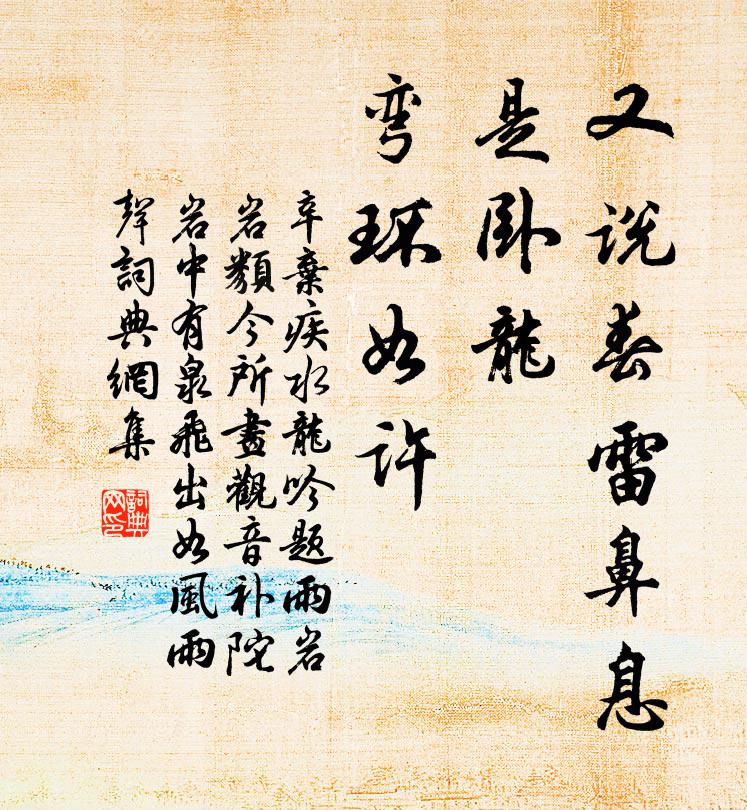 辛棄疾名句,水龍吟(題雨岩。岩類今所畫觀音補陀,岩中有泉飛出,如風雨聲)名句