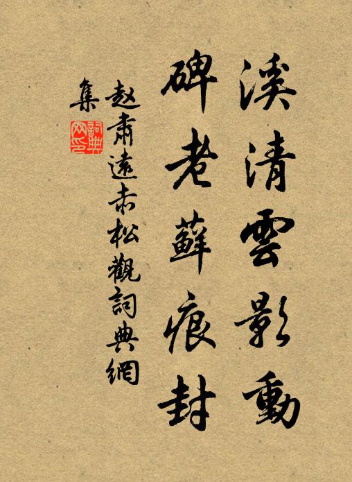 古詩文歷史字典書法欣賞書法字典國語詞典說文解字康熙字典古漢語字典溪清雲影動,碑老蘚痕封趙肅遠 《赤松觀》名句出處出自宋代趙肅遠的《赤松觀》全文:入門蒼翠合,地暖不知冬。羊化屋頭石,鶴歸山下松。溪清雲影動,碑老蘚痕封。帝者師何在,清游未許從。趙肅遠詩詞大全名句書法欣賞溪清雲影動,碑老蘚痕封書法作品趙肅遠名句,赤松觀名句名句推薦斷蟬嘶敗柳,孤蝶巒寒花釋文珦《秋野即事》先生已得道,市井亦容身張籍《隱者》靜拂琴床蓆,香開酒庫門白居易《池上早夏》但得遠塵寬俗鞅,不須臨下見秋毫鄭剛中《登烏奴》過門若有樊遲問,老子於中正遍知胡寅《和叔夏視獲三首》翰林東坡知此樂,至今舟上漁子談蘇仙蔡肇《煙江疊障圖》又嘆崇寧宣政年,無端亡虜誤開邊魏了翁《次韻虞退夫除夕七絕句》如今不似時平日,猶自笙歌徹曉聞王建《夜看揚州市》春山青,春水綠,鳥弄笙簧,梅飄香玉釋紹曇《偈頌一百零四首》學本先天造化中,希夷康節與磨礲易士達《贈易數胡一鑒》簟濕秋庭岳在煙,露光明滑竹蒼然薛能《關中秋夕》抱被每投僧榻宿,卷書時當酒家錢陸游《晚秋出門戲詠》若有精靈應笑我,不成一事謫江州白居易《題四皓廟(一作題商山廟)》田收野更迥,墟里隔煙陂梅堯臣《田人夜歸》湘欲湘人百不憂,田無異論只歌謳廖行之《上湖南孫漕四首》詩詞推薦摸魚兒(海棠)劉克莊〔宋代〕甚春來、冷煙淒雨,朝朝遲了芳信。驀然作暖晴三日,又覺萬姝嬌困。霜點鬢。潘令老,年年不帶看花分。才情減聲聲慢(題吳夢窗遺筆·別本作題夢窗自度曲霜花腴卷後)張炎〔宋代〕煙堤小舫,雨屋深燈,春衫慣染京塵。舞柳歌桃,心事暗惱東鄰。渾疑夜窗夢蝶,到如今、猶宿花陰。待喚起,甚真如勸農二首吳潛〔宋代〕百尺高橋鎮古丘,乘閒莫惜小夷猶。新楊受日春無際,宿麥翻雲歲有瘳。鷹隼圖南天外意,江山繞北望中愁。世事西平樂(廣陵送王資政正仲赴闕)晁補之〔宋代〕鳳詔傳來絳闕,當寧思賢輔。淮海甘棠惠花,霖雨商岩吉夢,熊虎周郊舊卜。千秋盛際,催促朝天歸去。動離緒。仙華重午張森〔宋代〕空山值端午,采蒲南澗濱。蒲生裹白石,澗水清粼粼。蟠根寸九節,服食能通真。采之不盈掬,土潔含芳辛。行行頌古二十一首釋鼎需〔宋代〕鹽貴米賤,諸事成現。擬欲商量,腦後拔箭。贈曾槃樂道趙蕃〔宋代〕我居懷玉山,茶山非一游。每觀文清竹,凜若人好修。往來道嘉禾,詩曾長公投。十年再建業,問勞加綢繆。中歌【越調】天淨沙_即事筆尖掃喬吉〔元代〕即事筆尖掃盡痴雲,歌聲喚醒芳春。花擔安排酒樽。海棠風信,明朝陌上吹塵。一從鞍馬西東,幾番衾枕朦朧,薄送葛源之太和主簿穆修〔宋代〕勿嘆從卑位,聊欣適去情。秋風九月急,飛鳥一帆輕。鱠斫江鱗活,杯嘗楚釀清。歡華莫回首,寵辱正堪驚。題金陵雜興詩後八首薛師董〔宋代〕尊嘉堂上崔巍老,制閫新開欲辟吾。又約來游游不得,風流輸與五雲蘇。