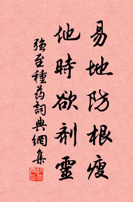 古詩文歷史字典書法欣賞書法字典國語詞典說文解字康熙字典古漢語字典易地防根瘦,他時欲劑靈強至 《種藥》名句出處出自宋代強至的《種藥》全文:百藥吾誰辨,農皇舊有經。傾金購善種,按譜驗真形。易地防根瘦,他時欲劑靈。天時縱不雨,灌溉賴園丁。名句書法欣賞易地防根瘦,他時欲劑靈書法作品強至名句,種藥名句名句推薦老筇支瘦影,寒木憑吟身。卞震《句》老境尋詩一字無,錦囊枵腹怨奚奴史彌寧《老境》片楮母偏重,無子相爺昂高斯得《物貴》對酒為君歡呂本中《菩薩蠻》委曲聊隨俗,艱難敢諱窮方回《六月二十九夜》爭趨畫戟高門地,竊伏荒山漲海瀕謝伋《寄曾使君》五朝藏冊寶,名實正相投乾隆《太廟》傷情燕足留紅殘,惱人鸞影閒團扇張可久《塞鴻秋·春情》雲出壺山早,風行晉水春胡仲弓《次韻答方元吉》海風吹亂木,岩磬落孤城羅隱《九江早秋》玉樓天上出,銀闕海中生蔡襄《自漁梁驛至衢州大雪有懷》兢兢死方已,寧論迫期頤陸游《自儆》莫辭數數醉東樓,除醉無因破得愁白居易《東樓招客夜飲》說空猶是看,領妙更何求洪咨夔《東山次俞紫微止止堂韻》欲過叔度留終日,未識魯山空此生蘇軾《呂與叔學士輓詞》詩詞推薦遣懷五首寄致道謝直〔宋代〕君子不謀食,士固食於人。飢餓自有責,何足煩吾神。拂幾展我書,熟讀困蹇屯。羲問與周孔,可鑑道屈信。歡歡水仙花二首徐似道〔宋代〕林下清風自一家,稍親梅竹近蘭芽。只緣羞與凡花伍,移植名園不肯花。赤亭渚詩江淹〔南北朝〕吳江泛丘墟。饒桂復多楓。水夕潮波赫。日暮精氣紅。路長寒光盡。鳥鳴秋草窮。瑤水雖未合。珠霜竊過中。坐識記小圃花果二十首劉克莊〔宋代〕雨惱顰西子,晴扶睡貴妃。老夫方入定,為爾一撩詩。詠井詩范雲〔南北朝〕乃鑒長林時。有浚廣庭前。即源已為浪。因方自成圓。兼冬積溫水。疊暑泌寒泉。不甘未應竭。既涸斷來翾。滹沱河二首文天祥〔宋代〕風沙睢水終亡楚,草木公山竟蹙秦。始信滹沱冰合事,世間興廢不由人。益昌次費伯矩贈行韻五首洪咨夔〔宋代〕朝氣風生暮氣歸,將材零落事功微。酸風斜谷祁山路,眼底何人插羽飛。玉女峰蒲壽宬〔宋代〕玉女攢空擁霧鬟,鐵心千古照溪灣。願分一滴清溪水,去洗人間脂粉顏。泛溪許渾〔唐代〕疑與武陵通,青溪碧嶂中。水寒深見石,松晚靜聞風。遁跡驅雞吏,冥心失馬翁。才應畢婚嫁,還此息微躬。矮道人胡仲弓〔宋代〕白髮蒼顏老,孩童三尺身。向來陽刺史,留得道州人。鳧膝應難續,龜趺卒莫伸。朝家無歲貢,流落瘴江濱。
