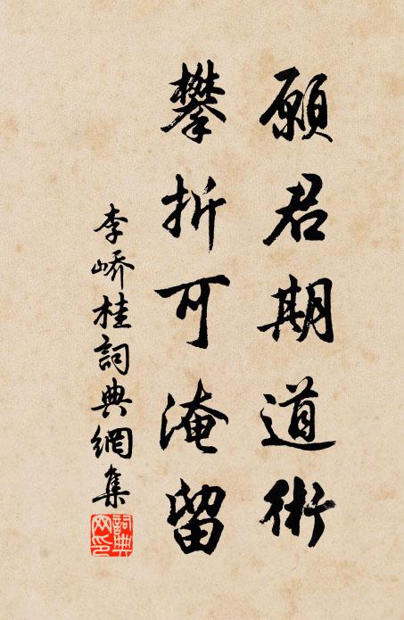 古詩文歷史字典書法欣賞書法字典國語詞典說文解字康熙字典古漢語字典願君期道術,攀折可淹留李嶠 《桂》名句出處出自唐代李嶠的《桂》全文:未植銀宮裡,寧移玉殿幽。枝生無限月,花滿自然秋。俠客條為馬,仙人葉作舟。願君期道術,攀折可淹留。李嶠詩詞大全名句書法欣賞願君期道術,攀折可淹留書法作品李嶠名句,桂名句名句推薦慢靸輕裾行欲近,待調諸曲起來遲薛能《舞者》相見群仙書玉葉,更應交口嘆精靈陳造《再次交代韻四首》飲先愁,吟又懶趙文《蘇幕遮》懷抱連宵得好開,莫愁波浪與塵埃虞儔《得旨與郡歸自浙東余成卿王貫之葉德還追送至》斑斑遠林鳥,極目波煙中梅堯臣《擬水西寺東峰亭九詠棲煙鳥》金井沃醉面,落筆動至尊沈繼祖《送洪內翰知太平府》候騎書出紛紛,書元戎霍冠書軍皎然《從軍行五首》晚稻亦懷新,穎實相接連虞儔《和寧國守沈察院九月嚴霜十五韻》嗚呼,典午去矣,柴桑歸矣,黃花老矣,徵士卒矣王奕《彭澤祭陶靖節祠》深衣傴僂如初命,卮酒從容向晚斟蘇軾《失題》不憂稻粱絕,憂在羅網間陳與義《雜書示陳國佐胡元茂四首》憂世最憐秦地老,指迷端有洽中公胡宏《和馬大夫闢佛五首》春風傳我意,草木別前知李白《望漢陽柳色寄王宰》越天雲復晴乾隆《蕭山道中作》轅下已疲猶戀主,道邊寧死不為鉤宋祁《得杭州鄭資政書》詩詞推薦宴桃源·前度小花靜院白居易〔唐代〕前度小花靜院,不比尋常時見。見了又還休,愁卻等閒分散。腸斷,腸斷,記取釵橫鬢亂。和經略宣徽吳太尉以將經洛陽舊隱之作宋庠〔宋代〕公有長才動縉紳,朝廷不肯棄名臣。高懷空結山中社,遠略今清塞外塵。竹塢未荒溪葉密,菊叢雖舊徑花新。南台王子猷黎廷瑞〔宋代〕東晉諸公富貴痴,風流千載使人悲。子猷欲作袁安臥,還有閒情適剡溪。東林一枝庵鄧肅〔宋代〕世間傑棟俯飛翰,簾旌不動天風寒。但得一身自安逸,誰思寒士三萬間。東林天下推第一,淨幾明窗萬禪客。主人古靈山試茶歌陳襄〔宋代〕乳源淺淺交寒石,松花墜粉愁無色。明星玉女跨神雲,斗剪輕羅縷殘碧。我聞巒山二月春方歸,苦霧迷天新雪飛。次韻宇文守攜酒相訪李石〔宋代〕天雷裂山崖,驟雨翻盆盎。田畝懷政最,草木知治狀。使君富經術,暫屈乘一障。黃堂燕清香,比屋醉春釀。文章村居張舜民〔宋代〕水繞陂田竹繞籬,榆錢落盡槿花稀。夕陽牛背無人臥,帶得寒鴉兩兩歸。答真西山偈釋淨豁〔宋代〕青編讀後方為士,共牒頒時始是官。不拜皇朝真爵命,要行所學也應難。和陶郭主簿二首蘇軾〔宋代〕今日復何日,高槐布初陰。良辰非虛名,清和盈我襟。孺子卷書坐,誦詩如鼓琴。卻去四十年,玉顏如汝今。閉戶秋日登廣州城南樓詩江總〔隋代〕秋城韻晚笛。危榭引清風。遠氣疑埋劍。驚禽似避弓。海樹一邊出。山雲四面通。野火初煙細。新月半輪空。塞外