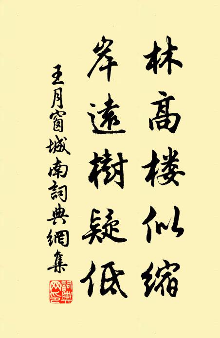 古詩文歷史字典書法欣賞書法字典國語詞典說文解字康熙字典古漢語字典林高樓似縮,岸遠樹疑低王月窗 《城南》名句出處出自宋代王月窗的《城南》全文:早出城南路,江山總著題。林高樓似縮,岸遠樹疑低。鸜鵒噪喬木,桔槔鳴小畦。郵亭聊一憩,沽酒夕陽西。王月窗詩詞大全名句書法欣賞林高樓似縮,岸遠樹疑低書法作品王月窗名句,城南名句名句推薦紅綃忍染嬌春雪,瞪目看行切玉刀周曇《隋門賀若弼》自然成野趣,都使俗情忘韋述《春日山莊》上言井有德,為費四字銘王洋《謝吳提乾惠詩文》紅退小園桃杏,綠生芳草池塘向子諲《西江月》可憐如赴史君期晁補之《臨江仙》如何復不遂,歸聽鏡湖雨陸游《雜感五首以不愛入州府為韻》更喜友生能餉酒,欣然一醉倒長瓶陸游《幽居遣懹》連素穗,翻秋氣,細節疏莖任長吹耿湋《蘆花動》山路梅花早,湖天雪意遲喻良能《訪何茂恭於南湖何有詩因次韻》哭到先生道已窮,夕陽千古起悲風劉黻《挽萬竹西隱君》忽見洛陽人,鬻鏡長安道陳允平《嘆鏡辭》北闕紆宸藻,南橋列祖筵徐知仁《奉和聖制送張說巡邊》更看後房歌舞晁端禮《金蕉葉》遮坐銀屏度水沈高觀國《浣溪沙》公豈失策者,獨留枯槁形張元乾《訪周元舉菁山隱居》詩詞推薦水調歌(題角牴人障)程節齋〔宋代〕養氣兼養勇,豈不丈夫哉。何人剛欲鬥力,謾向此間來。莫論施身文繡,看取兼人膽諒,胸次盡嵬嵬。獨步登壇後送和西蕃使杜審言〔唐代〕使出鳳凰池,京師陽春晚。聖朝尚邊策,詔諭兵戈偃。拜手明光殿,搖心上林苑。種落逾青羌,關山度赤坂。疆場好事近仲並〔宋代〕襟韻絕纖塵,炯炯夜光明月。合是紫荷持橐,侍丹墀清切。暗香疏影想公家,人與梅超絕。酒罷帝城早去,占百花送費恭父釋寶曇〔宋代〕擔頭蜀貨無錙銖,兩籠只載先君書。但知不敗乃翁事,報與不報君何須。渥窪一日新生駒,黃金羈勒安用渠。西風贈高司理陳造〔宋代〕窮鄉洗眼挹清揚,凜若重登月旦堂。驥子鳳雛端不苟,吏能儒業況兼長。簡孚首解秋荼密,襞積仍熏古錦香。我亦袁仁敬歌佚名〔唐代〕天不恤冤人兮,何奪我慈親兮。有理無申兮,痛哉安訴陳兮。七歌效杜陵體丘葵〔宋代〕山林嘯聚繁有徒,州家買盡勤招呼。縣官被命不敢遜,麒麟出模群狐孤。昨者參州紅帕首,高官厚祿恣狂圖。嗚呼詠紫荊朱翌〔宋代〕鶴骨龍筋結壽枝,紅綃紫綺曝仙衣。只應不奈 * 爪,獨領春風住翠微。醉落魄呂渭老〔宋代〕明窗讀《易》。時才人地俱超軼。偶然一墮槐安國。說利談功,這事怎休得。何時置酒圖書室。揮弦目送西飛翼。博山道中趙蕃〔宋代〕春陰春晴往復佳,園花落去逢山花。城中小駐欲十日,坐覺老眼孤芳華。中團寺前慣休歇,故向博山尋曲折。眼中