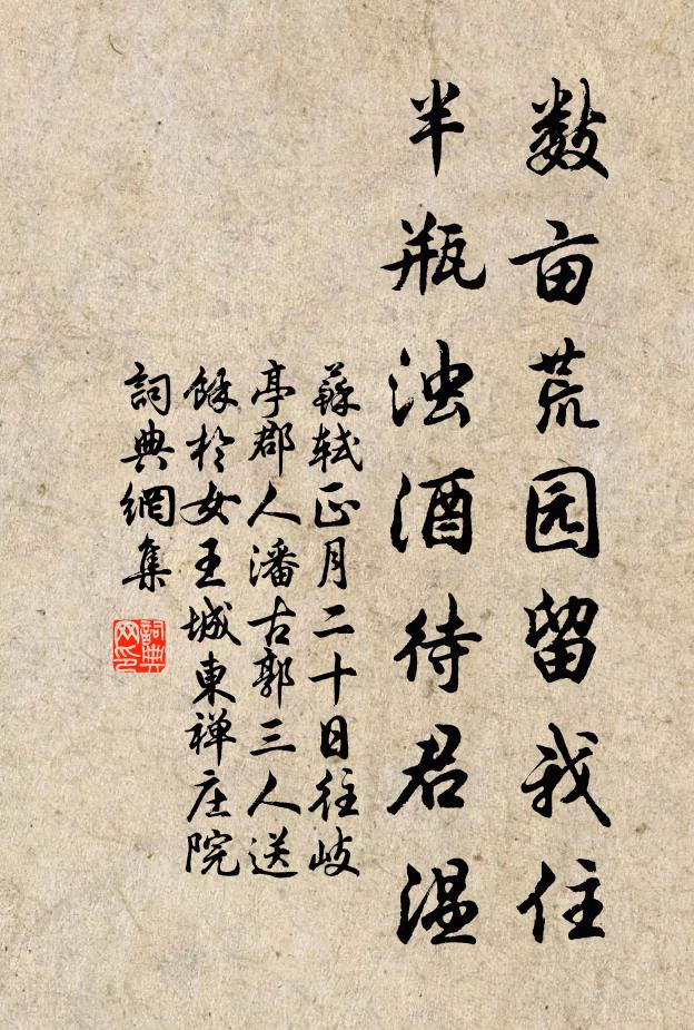 幾畝荒僻的田園留我在這兒居住,半瓶渾濁的老酒等待友人來溫。