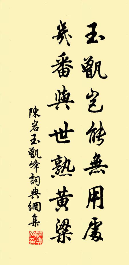 古詩文歷史字典書法欣賞書法字典國語詞典說文解字康熙字典古漢語字典玉甑豈能無用處,幾番與世熟黃粱陳岩 《玉甑峰》名句出處出自宋代陳岩的《玉甑峰》全文:茹芝仙客老仙鄉,淨盡人間粒食腸。玉甑豈能無用處,幾番與世熟黃粱。陳岩詩詞大全名句書法欣賞玉甑豈能無用處,幾番與世熟黃粱書法作品陳岩名句,玉甑峰名句名句推薦安得翛然辭物役,披襟終日挹清風王炎《郡中游觀之地清風樓為第一前此諸公有詩似覺》曾侍瑤池宴席,三千女,深淺勻紅仲殊《滿庭芳》珠翠無非二八人,白居易《勸酒(以下見《文苑英華》)》斷橋測水露半影,野路擉泥留亂痕滕岑《拄杖》用真儒、同建太平功,心相屬張鎡《滿江紅(賀項平甫起復知鄂渚)》今朝卻得君王顧,重入椒房拭淚痕柳公權《應制為宮嬪詠》棖黃橘綠冬初暖楊無咎《漁家傲》聞名四十載,茲地忽相逢張九成《悼玉溪》何所獨卻前曹植《當欲游南山行》眉宇陰功無際張野《水龍吟 為何相壽》水長路且壞,惻惻與心違儲光羲《相和歌辭。野田黃雀行》與士為春頌風雅,書於白石其上苴曾豐《賀廣東漕使黃郎中生朝》營平請谷三百萬,祁連引兵九千里黃庭堅《和謝公定征南謠》才過青泥春便好,水邊林下見梅花文同《過青泥》殷懃勸加餐,代我破戒罪陳師道《送李奉議亳州判官四首》詩詞推薦賦張舍人抱嘯堂五首姜特立〔宋代〕自古英雄困里閭,風雲相遇藉吹噓。何人得似徐元直,說與君王蚤顧廬。挽葛知錄母二首劉宰〔宋代〕人間盛事古難並,結髮相看兩壽寧。彤管忽成賢母傅,紫霄獨耀老人星。馬墜強出贈同座白居易〔唐代〕足傷遭馬墜,腰重倩人抬。只合窗間臥,何由花下來。坐依桃葉妓,行呷地黃杯。強出非他意,東風落盡梅。哭居塵禪師徐照〔宋代〕今朝聞實信,一隻海船遙。此世永相隔,何僧可與交。茶從秋後盡,門絕月中敲。昨夜山家夢,親曾到石橋。寄郭伯瞻劉過〔宋代〕聖門力學錢公輔,盛世能書蔡伯喈。出處有時安義命,笑談無我見襟懷。桂花香滿山堂鬧,秋氣清連石洞偕。只好東谷樓鑰〔宋代〕舊說東柯谷,茲來到此山。樹深煙冉冉,花落雨潺潺。有客禮師塔,何人叩祖關。天連秋水遠,此意尚人間。讀書齋詩謝靈運〔南北朝〕春事時已歇。池塘曠幽尋。殘紅被徑隧。初綠雜淺深。偃仰倦芳褥。頻步憂新陰。謀春不及竟。夏物遽見侵。嘉興道中陳著〔宋代〕此來知幾番,此景孰能言。有堰留河水,無山礙稻村。船收菱入市,家植桂當門。風物有如此,誰招二陸魂。嚴先輩送鯉魚趙蕃〔宋代〕嚴郎得魚不敢食,走送茅齋嫌步遲。卻愧家貧慣粗糲,無人為我膾銀絲。太常引 予年廿許,時自秦州侍下,還太原,元好問〔金代〕祖道道傍。少年有與紅袖泣別者,少焉車馬相及,知其為觀察之孫振之也。所別即琴姬阿蓮,予嘗以詩道其事。今