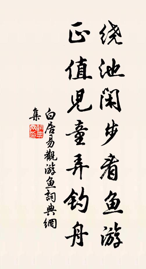 公元830年(大和四年)庚戌,白居易59歲,為太子賓客分司,回洛陽履道里。冬,病眼。十二月二十八日,代韋弘景為河南尹。《觀游魚》一詩即是這一年所作,於平淡普通的生活場景中卻表達了作者垂暮之年的傷感。白居易名句,觀游魚名句