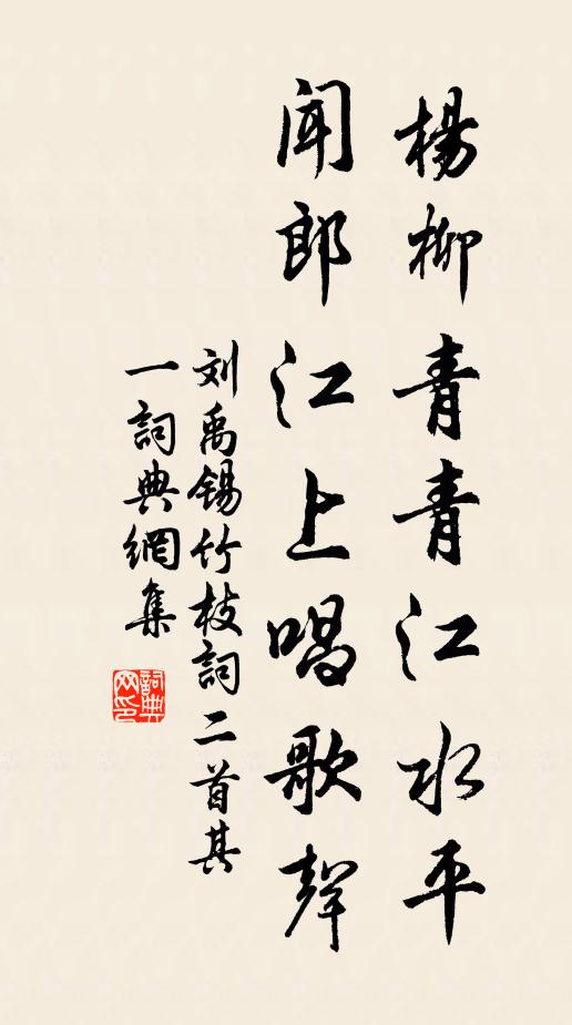 楊柳青青江水平,聞郎江上唱歌聲。(唱歌 一作:踏歌)