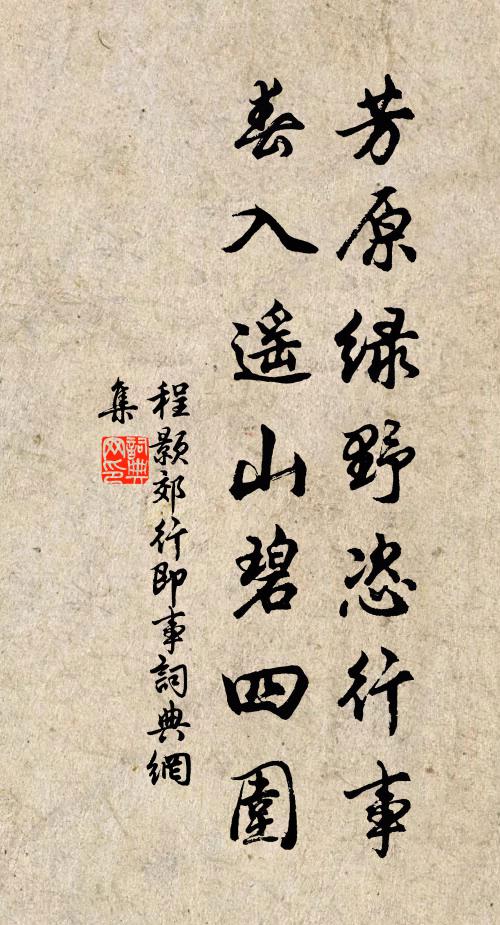我在長滿芳草花卉的原野盡情游賞,遠山春意正濃,四周一片碧綠蒼翠。