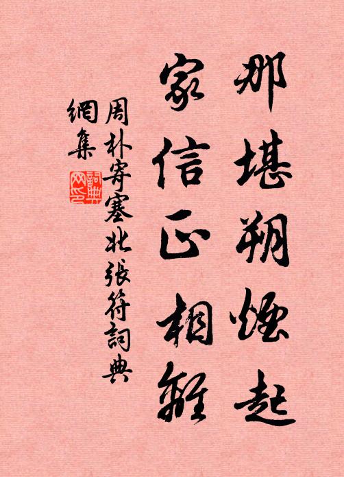 古詩文歷史字典書法欣賞書法字典國語詞典說文解字康熙字典古漢語字典那堪朔煙起,家信正相離周朴 《寄塞北張符》名句出處出自唐代周朴的《寄塞北張符》全文:隴樹塞風吹,遼城角幾枝。霜凝無暫歇,君貌莫應衰。萬里平沙際,一行邊雁移。那堪朔煙起,家信正相離。周朴詩詞大全名句書法欣賞那堪朔煙起,家信正相離書法作品周朴名句,寄塞北張符名句名句推薦江上落英如雪謝薖《如夢令(陳虛中席上作,贈李商老)》風逗湘簾雪絮飛,池痕雨過麴塵肥方岳《次韻趙端明萬花園》豈分長岑寂,明時有至公方乾《東溪別業寄吉州段郎中》拳拳奉天理,坦坦息心機陸游《學易》一別三四日,已懷千萬情姜特立《寄方叔游 * 寺三首》那知一丁守,蚤白十年頭方岳《解榻》飛夢到郎邊范雲《閨思詩》欲少為君留,歸心已先騖吳儆《題陽山寺》誰知幽谷猶藏春,萬蔕千跗意態新史浩《次韻慈奧寂照院僧石岩花》鹿鳴志豐草,況復虞人箴顧況《遊子吟》極知旅瑣酒難賒,亦欠魚如丙穴嘉方回《遁翁賜詩不已複次韻二首》前之翩然來,今復欣然留陳造《張秀才復留為作》政當眊矂中,忽有一奇事楊萬里《午睡起》燕頷從來骨貴,鸞棲尚屈才多葛勝仲《西江月(送衛卿弟赴定遠簿)》長日老春看落盡,野禽閒哢碧悠悠崔櫓《題山驛新桐花》詩詞推薦冷廨面挹重湖結樓以收逸放之景扁以清斯諸友洪咨夔〔宋代〕寧飲三斗水,不揖褦襶子。寧食三斗蔥,不踏龍斷市。伯夷聖之清,餓死不受滓。死猶清可為,況乃未必死。幾人登入氏書樓強至〔宋代〕塵土長愁舉眼低,轉身今喜近晴霓。天邊牛斗開吳墅,鳥外山川走越溪。擬解醉冠從此宿,恨無健筆為君題。牙籤劉乾耀紹原昔同里巷以貧見過愧無以副其意輒仲並〔宋代〕舊時阡陌荊榛底,十載縱橫豺虎群。絳帳並游那更得,烏衣群從斷相聞。尚傳是是非非語,翻坐奇奇怪怪文。諛墓題文發叔所藏潘子真水墨江湖八境小軸武昌春楊萬里〔宋代〕花外廋樓月,鶯邊吳宮柳。我欲問廢興,春風獨無口。讀守道詩張耒〔宋代〕仁宗之初公有聲,一世懦者聞之驚。日行古義不顧俗,師事孫子傳其經。掃堂捧杖供賤役,侍師之坐隨師行。質疑次韻題沈傳曜瘦節堂沈與求〔宋代〕平生一字不療飢,誰雲糠覈能瓠肥。牙籤玉籌五鼎食,是中有趣非錢痴。萬事顛倒絕可嗤,此腹卻受將軍譏。吾宗暮春山行陳紀〔宋代〕不具看花眼,蕭然綠暗邨。貧來疑筆硯,老去信乾坤。日澹樹無影,潮回草有痕。詩成鷗沒處,鴉外又黃昏。得房公池鵝杜甫〔唐代〕房相西亭鵝一群,眠沙泛浦白於雲。鳳凰池上應回首,為報籠隨王右軍。雜詩四首王之望〔宋代〕江發岷山陽,河出崑崙趾。淵源既洪深,浩浩並眾水。東流至渤澥,曲折萬餘里。經山無重數,過郡不知幾。海邊一冬無雪立春後九日始有之次湯倅韻虞儔〔宋代〕冰花何事太遲開,肯傍春風腳底來。飛絮漫天輕認柳,落英滿地錯憐梅。玄冥莫恨空歸去,青帝從教倒載回。官冷