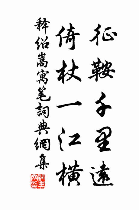 古詩文歷史字典書法欣賞書法字典國語詞典說文解字康熙字典古漢語字典征鞍千里遠,倚杖一江橫釋紹嵩 《寓筆》名句出處出自宋代釋紹嵩的《寓筆》全文:幽徑草初青,無人知地名。征鞍千里遠,倚杖一江橫。雲重欲為雨,風和拗得晴。家家好春色,春色遍空明。釋紹嵩詩詞大全名句書法欣賞征鞍千里遠,倚杖一江橫書法作品釋紹嵩名句,寓筆名句名句推薦古今一俯仰,衰草迷隋宮方岳《與同幕集南樓再用韻》是翁貧不憂,朝飯罄儲粟李彌遜《題葉擇甫繡壁軒》知有毗盧一逕通,信腳直前無別巧蘇轍《夜坐》月底溪邊一晌看,便恐凌波去王國維《卜運算元 水仙》月穿淨牖霜成隙,風卷殘花錦作堆劉兼《命妓不至》況此近居里,而能盍朋簪方鳳《游寶掌山寺》躬耕會有年穀豐,笑詠五柳卑揚雄劉宰《喜西崗橋成並書邦美東西橋記後》筆端有口古睞稀,妙悟奚煩用力追張鎡《誠齋以南海朝天兩集詩見惠因書卷末》養生事親汔師古,炊玉爨桂能至今黃庭堅《再和公擇舅氏雜言》漏聲隨葉換,風意繞幡來宋庠《善惠師禪齋》彼其察物類有道,能取精妙遺其粗韓維《又和楊之美家琵琶妓》五月藕花千樣錦,四時山色一般青鄒登龍《水亭》此中玄又玄蕭衍《十喻詩 乾闥婆詩》鈿轂香車過柳堤,樺煙分處馬頻嘶,為他沉醉不成泥張泌《浣溪沙》春淺花遲,攜酒為春催陳允平《祝英台近》詩詞推薦又即事二章上呈司馬光〔宋代〕覺後追思氣味長,歡情愁緒兩俱忘。近來方得醉中趣,熟寐沈沈是醉鄉。江心寺陳某〔宋代〕誰把袈裟築半峰,倚雲樓閣打天鍾。東西塔上自分嶼,風雨聲中忽見龍。隔岸愁吹孤戌角,歸鴉寒立夕陽松。舊時薄暮游潘登仕園園有堂三間榜曰一枝蓋湖公樞仲並〔宋代〕斜窗短屋傍殘暉,宴坐蕭然老布衣。枯淡生涯一枝足,世間驚鵲誤南飛。刺賈平章鹹淳士人〔宋代〕鼙鼓驚天動地來,九州赤子哭哀哀。廟堂不問平戎策,多把金錢媚秀才。發句米奉議見示與諸公唱和北山壯觀佳篇因索蘇頌〔宋代〕省座來分聖主憂,仙翁常作北郊遊。瓜田接畛尋期會,菊蕊浮杯阻獻酬。壯觀風騷歸作者,平山歡宴集清流。從茲將赴陳留寄心老陳與義〔宋代〕今日忽不樂,圖書從糾紛。不見汝州師,但見西來雲。長安豈無樹,憶師堂前柳。世路九折多,遊子百事醜。三年酴醿一絕蘇籀〔宋代〕梅釅蘭氳芍藥清,旃檀婆律萃天馨。試開秦趙當年目,何藉珠簾翡翠屏。次韻孔平仲著作見寄四首蘇轍〔宋代〕昔在京城南,成均封茅屋。清晨屣履過,不顧車擊轂。時有江南生,能使多士服。同儕畏鋒銳,兄弟更馳逐。文成送羅季能還延陵鎮劉宰〔宋代〕眼底紛紛利慾昏,君心當與哲人論。欲塵不染修莖露,世味逾輕太古尊。朞有此亞當歲儉,寒冬何地不春溫。幡然下元日詣會慶節所道場,呈余處恭尚書楊萬里〔宋代〕琳宮朝謁早追趨,漏盡銅壺殺點初。半縷碧雲橫界月,一規銀鏡裂成梳。自拈沉水祈天壽,散作非煙滿王虛。已被