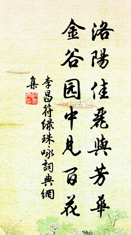 古詩文歷史字典書法欣賞書法字典國語詞典說文解字康熙字典古漢語字典洛陽佳麗與芳華,金谷園中見百花李昌符 《綠珠詠》名句出處出自唐代李昌符的《綠珠詠》全文:洛陽佳麗與芳華,金谷園中見百花。誰遣當年墜樓死,無人巧笑破孫家。李昌符詩詞大全名句書法欣賞洛陽佳麗與芳華,金谷園中見百花書法作品李昌符名句,綠珠詠名句名句推薦采雲籠月魄,寶氣繞星芒范成大《萬眼羅》顧予倦棲托,終日憂窮匱劉長卿《題冤句宋少府廳留別》大愚不量能,品藻輒己出梅堯臣《大愚》好在田園心事懶,罷休簪組鬢毛催晁補之《別關景暉二首二》聽鍾投宿入孤煙,岩下病僧猶坐禪施肩吾《宿蘭若》鬢髮如霜心未灰,尚營活計待將來趙希邁《老叟》一朝奉指使筇筰,駟馬赤車從萬夫秦觀《和東城紅鞓帶》經沙塞、涉履煙塵,瑞色怡然更英發曹勛《一寸金(太母誕辰)》東鄰瓜正熟,把酒裛清輝顧禧《雜感》盡日齋宮雲聚散,不知步武是誰移楊簡《和胡鼓院郊台致齋即事》霜花露菊留迎客,預戒西成省控持陳造《再次韻馬主簿二首》驅帚水爭溝口,捲簾日款屋山范成大《喜晴》正日上、花陰淺高觀國《御街行(賦簾)》柳樹烏爭宿,爭枝未得飛上屋李端《相和歌辭烏棲曲》門開納坐聽論列,笑口侈哆傾胞懷王令《初聞思歸鳥憶昨寄崔伯易朱元弼》詩詞推薦和劉卿材十詠龍潭黃庶〔宋代〕寂寞真龍去,雩壇血不乾。世情多冷暖,對此鼻辛酸。大衍易吟四十首方回〔宋代〕卦下觀一彖,卦中求六爻。今人僅知此,著眼未為高。鸚鵡曲 四皓屏馮子振〔元代〕張良更姓記橋住。夜待旦遇個師父。一編書不為封留,字字鹹陽膏雨。借箸籌滅項興劉,到底學神仙去。待商山西詠史下曹丕陳普〔宋代〕春華建安曹子建,秋實西京張釋之。父事刑顒奴七子,黃初便作萬年期。閬州東園十詠錦屏閣文同〔宋代〕茂林斑若錦,秀巘矗如屏。底處供登覽,闌乾在杳冥。大明鐃歌鼓吹曲十三篇楊維楨〔元代〕於王氣,塗之岡。五百祀,皇陵藏。火流烏,星流紅,駕生聖人應天祥。聖人生,六合一統天下昌。汝阿彌,言語奉和魯望樵人十詠樵徑皮日休〔唐代〕蒙蘢中一徑,繞在千峰里。歇處遇松根,危中值石齒。花穿枲衣落,雲拂芒鞋起。自古行此途,不聞顛與墜。宴桃源/如夢令曹遇〔宋代〕西湖辟暑棹扁舟。忘機狎白鷗。荷香十里供瀛洲。山光翠欲流。歌浩浩,思悠悠。詩成興未休。清風明月解相留。題西淙陳宓〔宋代〕當年巨刃劈崖開,便擁雙虬海上來。舊跡幾年甘隱霧,新名一日怕驚雷。池邊有地惟生茝,石上無泥更植梅。酷似早秋感懷張耒〔宋代〕一行為吏百事廢,幸此村州終日閒。莫疑虎兕率曠野,正見虎豹守天關。櫳簾晝靜燕已去,陂澤風高雁欲還。老見