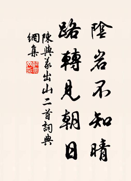 古詩文歷史字典書法欣賞書法字典國語詞典說文解字康熙字典古漢語字典陰岩不知晴,路轉見朝日陳與義 《出山二首》名句出處出自宋代陳與義的《出山二首》全文:陰岩不知晴,路轉見朝日。獨行修竹盡,石崖千丈碧。名句書法欣賞陰岩不知晴,路轉見朝日書法作品陳與義名句,出山二首名句名句推薦騎箕雖永隔,精爽儼如存樓鑰《林正惠公輓詞》但看青青節,肯隨黃葉殘郭印《雲溪雜詠》幽事類分皆可譜,高情辭達自成詩陸游《暇日坐山麓松石間作》月入蘆花冷,風磨柳葉殘趙友直《山中即景四首》余獨何為志無成謝惠連《燕歌行》遺篇寂寞論心少,一見吾人意已傾張栻《送林擇之》緬懷壯士心,雅契幽人抱李彌遜《秋居雜詠十首》管甚紅輪西墜,盡教他,月出東頭佚名《滿庭芳》千秋萬古,先天消長圖深,何人解識興亡本安熙《石州慢 寄題龍首峰》況以兄為郎,仕也人豈迫梅堯臣《觀王介夫蒙亭記因記題蒙亭》無地著、許多歡笑佚名《賀新郎》此自是、平生願力牟巘《賀新郎(壽洪雲岩)》聚沱留積滓,逆浪集浮漚陽枋《與存子侄王南運上風聊句》一路俱佳境,收歸五字城虞儔《途中得姜總管詩因和韻》吳王已歿女不返,潮水無情那有期皎然《賦得吳王送女潮歌,送李判官之河中府》詩詞推薦奉和御製讀前漢書夏竦〔宋代〕酇侯依日月,天駐敘隆昌。邁德大三傑,觀時定九章。過因王尉辯,功賴鄂君揚。終以同心美,清寧贊後王。陪留宰游灌溪回飲縣圃六絕王炎〔宋代〕泥融紫燕欲營壘,日暖黃蜂爭取花。試向靜中觀物化, * 相對坐僧家。雜曲歌辭。古別離二首於濆〔唐代〕入室少情意,出門多路岐。黃鶴有歸日,盪子無還時。人誰無分命,妾身何太奇。君為東南風,妾作西北枝。青樓過華清內廄門李商隱〔唐代〕華清別館閉黃昏,碧草悠悠內廄門。自是明時不巡幸,至今青海有龍孫。郪中感舊劉象〔唐代〕頃年曾住此中來,今日重遊事可哀。憶得幾家歡宴處,家家家業盡成灰。句釋圓悟〔宋代〕獨憐萬木凋零後,屹立風霜慘澹中。句鄭文寶〔宋代〕登臨雖未立。將至玉山葛立方〔宋代〕蓐食轉前峰,梅黃細雨中。濤翻疑鷺翿,泉激認松風。山合秧畦窄,林深屐路通。怪來人語別,一置便江東。題洪景伯通判清閟堂陳知柔〔宋代〕別乘清名滿世間,卻來堂下植檀欒。已無欲物敗人意,且與此君同歲寒。夜月半庭金影碎,秋風一枕玉聲殘。雁行和潘安仁金谷集曹鄴〔唐代〕太守龍為馬,將軍金作車。香飄十里風,風下綠珠歌。莫怪坐上客,嘆君庭前花。明朝此池館,不是石崇家。