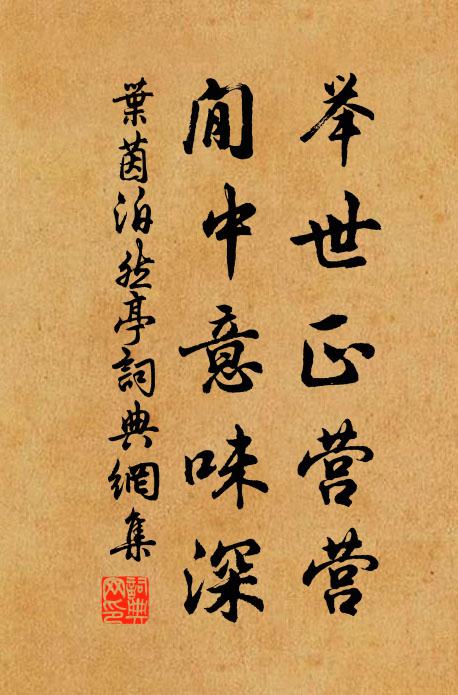 古詩文歷史字典書法欣賞書法字典國語詞典說文解字康熙字典古漢語字典舉世正營營,閒中意味深葉茵 《泊然亭》名句出處出自宋代葉茵的《泊然亭》全文:舉世正營營,閒中意味深。無憂伸足夢,自樂曲肱吟。火軟香凝穗,檐虛樹長陰。客來難舉似,指水印禪心。葉茵詩詞大全名句書法欣賞舉世正營營,閒中意味深書法作品葉茵名句,泊然亭名句名句推薦秋水澹交無限情,夜光照乘胡為者釋重顯《歌紀四明汪君信士》意境可千里,搖落江上林黃庭堅《子瞻題狄引進雪林石屏要同作》舉手謝天地,虛無齊始終李白《訪道安陵遇蓋還為余造真錄臨別留贈 【上竹》拄去客歸青洛遠,采來僧入白雲深齊己《梓栗杖送人》李廣落神鏃,往往中微石李新《次韻答西城王尉二十韻》遠輕吳江潮,乃見丈夫膽梅堯臣《永叔席上分韻送裴如晦》懷賢不能繼,多辟豈由民楊億《獄多重囚》須臾東方雲錦發,向來所見今難追陳與義《初至陳留南鎮夙興赴縣》事去一轉首,岩花幾經秋張嵲《方城驛》見了又休真似夢,坐來雖近遠於天吳融《浙東筵上有寄》鹽官王老師,偈頌一百五十首歡喜無著處釋心月《偈頌一百五十首》悄一笑、回車竹所劉辰翁《乳燕飛/賀新郎》端疑冰山固,可但拳石狠劉宰《漫塘觀雪分韻得遠字》三月已乖棠樹政,二年空負竹林期許渾《郡齋夜坐寄舊鄉二侄》醉揮毫,知音為我,發興高歌曹冠《夏初臨》詩詞推薦鷓鴣天趙彥端〔宋代〕一□青春正及笄。蕊珠仙子下瑤池。簫吹弄玉登樓月,弦撥昭君未嫁時。雲體態,柳腰肢。綺羅活計強相隨。天教送宇昭師釋文兆〔宋代〕相見又相別,無言感倍興。諸峰微下雪,一路獨行僧。午飯煙村磬,宵吟石屋燈。他方人請住,又得繼南能。再韻魏了翁〔宋代〕文化滅質甚塵土,物慾戕生劇豺虎。三年掛舌坐林皋,日月往來雲散聚。夫容自與詩腸謀,雖無顏色媚塗陬。夢隨寒食日看花王建〔唐代〕早入公門到夜歸,不因寒食少閒時。顛狂繞樹猿離鎖,跳躑緣岡馬斷羈。酒污衣裳從客笑,醉饒言語覓花知。老來湖上徐一山〔宋代〕堤上柳依依,柳風吹絮飛。帝京三月盡,客子幾時歸。山近鳥栖早,花殘人買稀。盡多湖水在,誰與浣塵衣。殘句陽蟲隕羿喪厥喙蘇軾〔宋代〕陽蟲隕羿喪厥喙,羽淵之化帝祝尾。沁園春陳人傑〔宋代〕取唐人“白衣閒亦貴,何必謁天階”之句。友人池襲父邀予同賦,因作長短句遺之禁鼓蓬蓬,忙殺公侯,穴城影中奇都管請贊釋惟一〔宋代〕牧以卑,守以規,迅雷疾風,鐵石不移。須彌其頹,只手力持。電光石火里軀耕奪食,春風和氣中摧枯拉萎。極等駕幸太學秦觀〔宋代〕原廟初更十二章,還輿詔蹕幸諸庠。法天辟水遙迎仗,應月深衣不亂行。風動四夷將遣子,禮行三舍遂賓王。前知次趙貴方九里松獨行韻杜范〔宋代〕道機已熟絕防閒,縱步來尋興里山。殘雪點衣消酒醉,晚風吹鬢帶詩還。妙年羨子歡悰足,走宦愁予樂事慳。安得