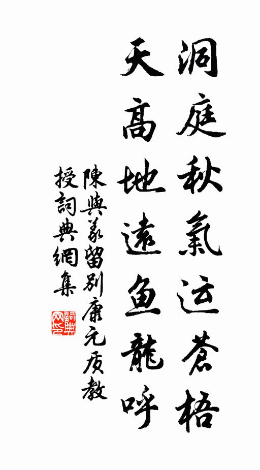 古詩文歷史字典書法欣賞書法字典國語詞典說文解字康熙字典古漢語字典洞庭秋氣運蒼梧,天高地遠魚龍呼陳與義 《留別康元質教授》名句出處出自宋代陳與義的《留別康元質教授》全文:腐儒身世已百憂,此去行年豈堪記。岳陽樓前一杯酒,與子同州復同味。洞庭秋氣運蒼梧,天高地遠魚龍呼。莫倚仲宣能作賦,不隨文若事征途。名句書法欣賞洞庭秋氣運蒼梧,天高地遠魚龍呼書法作品陳與義名句,留別康元質教授名句名句推薦稻粱仍欲報,歲月坐空捐韋嗣立《偶游龍門北溪忽懷驪山別業因以言志示弟淑奉呈諸大僚》玉皇殿閣微涼,看公重試薰風手辛棄疾《水龍吟(次年南澗用前韻為仆壽。仆與公生日相去一日,再和以壽南澗)》堪笑書生消幾許,有錢十萬醉經年陸游《對酒戲詠》不耕南畝田,為愛東堂桂於濆《思歸引》照耀屢嗟紅最盛,寵光今想綠增榮趙蕃《見榴花寄周丈》禁闥還容汲直歸,淮南定報奸謀寢周麟之《與蘇州守十詩以兵衛森畫戟燕寢凝清香為韻》古人所懷已汩汩,今人所懷又忽忽周文璞《行歌四首》萬形各有敝,斯名長不朽胡仲弓《感古十首》他人保無過,歲滿猶自遷強至《送吳令常甫之武平》澗草岩花日日開,江南秋盡似春回蘇轍《再和十首》回頭風景非去年,當時賓客今何處樓鑰《仲舅尚書生朝》都門桂玉地,久客憚羇旅王炎《謝江潭諸公》蚤懷功名心,經濟豈無意李廌《曉發鄧城和德麟韻》通流平,慕鴟鴞祝允明《九憫九首 其四》江水澄澄江月明,江上何人掐玉箏?隔江和淚聽,滿江長嘆聲張可久《憑欄人》詩詞推薦殢人嬌晁端禮〔宋代〕旋剔銀燈,高褰斗帳。孜孜地、看伊模樣。端相一餉,揉搓一餉。不會得、知他甚家娘養。不見些兒,行思坐想。初春雜興陸游〔宋代〕水長鷗初泛,山寒茗未芽。深林聞社鼓,落日照漁家。渡遠呼船久,橋傾取路斜。客愁慵遠眺,不是怯風沙。自君之出矣徐集孫〔宋代〕自君之出矣,蛾眉不復掃。寶鑑委埃塵,玉容為誰好。頌古七首三聖逢人即出釋慧勤〔宋代〕城南措大騎驢子,市北郎君跨馬兒。各各四蹄俱著地,三春同到月明池。將為鄞江之游先寄正仲三首舒岳祥〔宋代〕水漲苔梳發,風晴麥漾須。茶香度深竹,燈影射平蕪。歲月江流駛,乾坤客枕孤。鄞鄉風物好,蓴菜出湘湖。送杜子卿歸西淮黃庭堅〔宋代〕雪意涔涔滿面風,杜郎馬上若征鴻。樽前談笑我方惜,天外淮山誰與同。行望酒帘沽白蟻,醉吟詩句入丹楓。一時幽居陸游〔宋代〕早歲猶奇怪,中年痛掃除。華堂棋陸廢,名馬宴遊疏。散帙身忘倦,畦蔬手自鉏。寥寥千載後,誰此訪幽居?送遠杜甫〔唐代〕帶甲滿天地,胡為君遠行。親朋盡一哭,鞍馬去孤城。草木歲月晚,關河霜雪清。別離已昨日,因見古人情。雨師五首佚名〔宋代〕神之無象,亦可思索。維支陰陰,維風莫莫。降止壇宇,來顧芳聲。侑以鼓歌,薦此明誠。柳梢青·與龜翁登研意觀雪懷癸卯歲臘朝斷橋並馬之游吳文英〔宋代〕斷夢遊輪。孤山路杳,越樹陰新。流水凝酥,征衫沾淚,都是離痕。玉屏風冷愁人。醉爛漫、梅花翠雲。傍夜船回