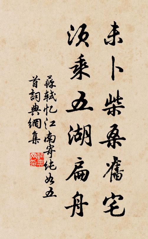 古詩文歷史字典書法欣賞書法字典國語詞典說文解字康熙字典古漢語字典未卜柴桑舊宅,須乘五湖扁舟蘇軾 《憶江南寄純如五首》名句出處出自宋代蘇軾的《憶江南寄純如五首》全文:人在畫屏中住,客依明月邊游。未卜柴桑舊宅,須乘五湖扁舟。蘇軾詩詞大全名句書法欣賞未卜柴桑舊宅,須乘五湖扁舟書法作品蘇軾名句,憶江南寄純如五首名句名句推薦翠眉長好何曾損,寄語啼禽漫不閒張耒《寓寺八首》聊將一掬水,洗我面慚怍王禹偁《八絕詩白龍泉》了消瘦,不承望剛做了個口兒休佚名《【仙呂】賞花時_臥枕著床染》二月春暉暉江總《燕燕于飛》聞善常開口,推公豈為身鄭谷《故少師從翁隱岩別墅亂後榛蕪感舊愴懷遂有追紀》兀坐悠悠閒度日,閉門咄咄靜書空汪晫《次韻處約兄春行用前韻》苦憐風力痴,未快霾陰掃程公許《良月十六日以祈晴宿齋郊壇寺僧拉登梅岩讀高》漁舟朝欸乃,樵斧晝敲鏗喻良能《疊嶂寒溪硯屏》尊酒相逢十載前,君為壯夫我少年韓愈《贈鄭兵曹》尋真何處寄閒情?小桃源暮景張可久《【正宮】醉太平_傷春煙消寶》醉臥松下石,扶歸江上津蘇軾《徐元用使君與其子端常邀仆與小兒過同游東山》莫使鄉愁亂,咬咬信子規司馬光《送王殿丞知眉山縣》薏苡連車載,珊瑚列樹敲胡寅《阻雪慈雲有懷叔夏》去違知己住違親,欲發羸蹄進退頻黃滔《下第東歸留辭刑部鄭郎中諴》四皓本違難,二疏猶待年權德輿《奉送韋起居老舅百日假滿歸嵩陽舊居》詩詞推薦偈頌九首釋如淨〔宋代〕打破黑漆桶,十方空索索。不受靈山記,安居大圓覺。屈原李覯〔宋代〕秋來張翰偶思鱸,滿筯鮮紅食有餘。何事靈均不知退,卻將閒肉付江魚。上巳散步匯東邵棠〔宋代〕江皋過雨弄晴暉,水滾桃花去似飛。今日已成曾點服,舞雩風裡帶春歸。答劉楨詩徐幹〔魏晉〕與子別無幾,所經未一旬。我思一何篤,其愁如三春。雖路在咫尺,難涉如九關。陶陶朱夏德,草木昌且繁。論肉賈似道〔宋代〕紫黑蒼黃肉,青白勝鵝梨。黑青肉亦白,淡黃白亦宜。晚思司空曙〔唐代〕蛩餘窗下月,草濕階前露。晚景淒我衣,秋風入庭樹。次韻丁端叔舟中值雪三絕喻良能〔宋代〕但知才出吳公右,孰識詩堪子建親。不惜剩吟黃竹句,何妨傳示白頭人。迎候林德輔帥參一首劉克莊〔宋代〕西埜約余同薦禰,六丁力盡不能留。霜蹄屢蹶追風驃,皓首還登載月舟。伊昔士元曾別駕,即今子美尚參謀。浮榮華亭十詠秦始皇馳道唐詢〔宋代〕秦德衰千祀,江演道不修。相傅大堤在,曾是翠華游。玉趾如將見,金椎豈復留。悵然尋舊跡,蔓草蔽荒丘。南徐別業早春有懷武元衡〔唐代〕生涯憂憂竟何成,自愛深居隱姓名。遠雁臨空翻夕照,殘雲帶雨過春城。花枝入戶猶含潤,泉水侵階乍有聲。虛度