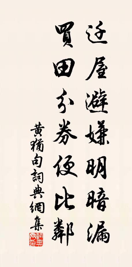 古詩文歷史字典書法欣賞書法字典國語詞典說文解字康熙字典古漢語字典遷屋避嫌明暗漏,買田分券便比鄰。黃猶 《句》名句出處出自宋代黃猶的《句》全文:遷屋避嫌明暗漏,買田分券便比鄰。黃猶詩詞大全名句書法欣賞遷屋避嫌明暗漏,買田分券便比鄰。書法作品黃猶名句,句名句名句推薦陶母將迎養,龐妻忽坐亡劉克莊《挽黃安人》尚書劍履出明光,居守旌旗赴洛陽劉禹錫《同樂天送令狐相公赴東都留守(自戶部尚書拜)》阻風桑落洲,悠然見廬山陽枋《過九江望風廬山雪一峰和全父弟韻》涉月在一床,幾成小冠盲晁補之《次韻彥遠相州道中二首》鑿開千里地,通得一隅天曹宗旦《劍門關》留侯常辟穀,何苦不長生王維《故太子太師徐公輓歌四首》少狂老方悔,焉用一科登方回《至後承元煇見和複次韻書病中近況十首》殺雞為黍朝夕事,苦節諸郎方下幃李處權《次韻德基效歐陽體作雪詩禁體物之字兼送表臣》移忠思致主,務實見臨民樓鑰《陳秘撰輓詞》博山爐暖澹煙輕顧夐《臨江仙》惜花人慾歸劉敏中《菩薩蠻 憶家庭月桂二首》溶溶空中雲,膚雨能滂沱白玉蟾《古別離五首盤莊黃檢院》悄然群物寂,高閣似陰岑韋應物《善福精舍示諸生》百花頭上開,冰雪寒中見。辛棄疾《生查子·重葉梅》烽沉灶減靜邊亭,海晏山空肅已寧賀朝《從軍行》詩詞推薦友人見借放翁絕筆葉茵〔宋代〕放翁今已矣,猶有未刊詩。閱稿無三豕,還書欠一鴟。聽兒弦誦罷,留客笑談時。發越吟邊思,心香答所知。寄雲谷王府判黃庚〔宋代〕曾記還家日,重來約夏初。自從一別從,又是十年余。原憲非關病,嵇康懶讀書。無從問訊息,近況果何如。讀士元傳孫應時〔宋代〕老賊狐鬼嘯,漢鼎不復支。再世益州牧,忍視宗國危。烈烈左將軍,四海聞英姿。東北久盪析,西南天啟之。建旗滿江紅 登石頭城清涼寺翠微亭張野〔元代〕翠微秋晚,試閒登絕頂,徘徊凝佇。一片清涼兜率界,幾度風雷貔虎。鍾阜盤空,石城瞰水,形勢相吞吐。江山依買烏薪戲題姜特立〔宋代〕雨雪冬春無了時,烏薪斷續惱衰羸。偶然買得婆歡喜,且免山翁曉皺眉。逍遙詠宋太宗〔宋代〕天生顏貌幾何般,鶴骨餐霞厭俗觀。赤水華池誰法則,白銀為闕又堪看。來傳音旨俱然混,位有尊卑勿異端。逆順太皇太后輓詞張耒〔宋代〕坐安民物由修己,默合神明為至公。他日已占懷月夢,後來方信補天功。四時化育坤無事,六合清明日正中。九載宿岸道人精舍閻防〔唐代〕早歲參道風,放情入寥廓。重因息心侶,遂果岩下諾。斂跡辭人間,杜門守寂寞。秋風翦蘭蕙,霜氣冷淙壑。山牖買炭蘇轍〔宋代〕苦寒搜病骨,絲纊莫能御。析薪燎枯竹,勃鬱煙充宇。西山古松櫟,材大招斤斧。根槎委溪谷,龍伏熊虎踞。挑抉題友人所居(即故元少尹宅)雍陶〔唐代〕亞尹故居經幾主,只因君住有詩情。夜吟鄰叟聞惆悵,七八年來無此聲。