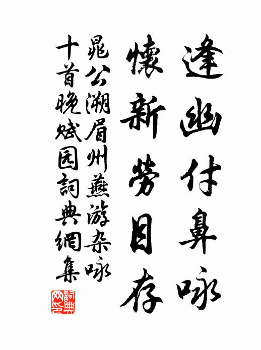 古詩文歷史字典書法欣賞書法字典國語詞典說文解字康熙字典古漢語字典逢幽付鼻詠,懷新勞目存晁公溯 《眉州燕遊雜詠十首晚賦園》名句出處出自宋代晁公溯的《眉州燕遊雜詠十首晚賦園》全文:雜樹略就列,清晨時涉園。逢幽付鼻詠,懷新勞目存。晁公溯詩詞大全名句書法欣賞逢幽付鼻詠,懷新勞目存書法作品晁公溯名句,眉州燕遊雜詠十首晚賦園名句名句推薦堂堂蔡與趙,繼者其誰哉劉克莊《陪西山游鼓山一首》掛席鵬風順,敲舷蜯月明陳深《送耕存大參使日本》向來曹孟德,曾擬表征西林同《賢者之孝二百四十首韓思復》笑年來,蕉鹿夢,畫蛇杯辛棄疾《水調歌頭》斂手笑相延,社酒有殘酌白居易《觀稼》諸兄落落不可望,兩季幸肯分餘光蘇轍《次韻孔武仲三舍人省上》舞紅輕帶愁飛,寶韉暗憶章台路周密《水龍吟(次張斗南韻)》夜深滿勸金杯袁去華《清平樂》喚取潮回去張元乾《點絳唇》出門大路礲砥平,何得卻言新徑捷李新《題月山亭》龜范馬圖俱寂寂,獸蹄鳥跡正紛紛丘葵《呈梅林顏宗之》掃庭露青天,坐月蔭嘉木歐陽修《憎蚊》山居心已慣,俗事耳憎聞劉得仁《題吳先生山居》詩成稍覺嘉賓集,飲少先愁急板催黃庭堅《和答趙令同前韻》流傳玉刻皆黃絹,早晚金閨報大刀秦觀《懷李公擇學士》詩詞推薦詩一首李壁〔宋代〕沙上翩翩兩白鷗,西風想見芰荷秋。晚來十幅冰紈淨,斷取瀟湘一片愁。句陳越〔宋代〕誰哀城下酌,不廢洛中吟。已亥雜詩 301龔自珍〔清代〕艱危門戶要人持,孝出貧家諺有之。葆汝心光淳悶在,皇天竺胙總無私。滿庭芳·堠雪翻鴉納蘭性德〔清代〕堠雪翻鴉,河冰躍馬,驚風吹度龍堆。陰燐夜泣,此景總堪悲。待向中宵起舞,無人處、那有村雞。只應是,金笳南鄉子 冬夜黃升〔宋代〕萬籟寂無聲。衾鐵稜稜近五更。香斷燈昏吟未穩,淒清。只有霜華伴月明。應是夜寒凝。惱得梅花睡不成。我念梅亡嫂靖十君蒲氏輓詞二首蘇轍〔宋代〕宦遊非不遂,流落自粗疏。宗黨半天末,存亡驚素書。佳城東嶺外,茂木故阡余。遙想千車送,臨江涕滿裾。湘中感懷齊己〔唐代〕漁翁那會我,傲兀葦邊行。亂世難逸跡,乘流擬濯纓。江花紅細碎,沙鳥白分明。向夕題詩處,春風斑竹聲。尚書尤公輓詞樓鑰〔宋代〕北面願師承,東台拜老成。忘年容末至,敘契若平生。風月吟千首,雷霆寄一名。送車無路到,寒涕為君傾。夜泊李陽驛高邁〔宋代〕風拂烏紗兩鬢秋,李陽溪上夜停舟。市燈閃月聞鳴犬,城柝敲高起睡鷗。千里遠馳承寵命,通宵不寐為民憂。幽懷天台書事十三首曹勛〔宋代〕南窗面日北窗寒,終日南窗體甚安。向道老來惟倦坐,看銷一縷篆煙殘。