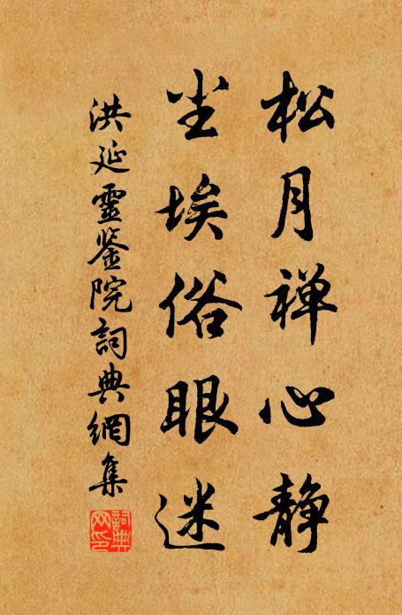 古詩文歷史字典書法欣賞書法字典國語詞典說文解字康熙字典古漢語字典松月禪心靜,塵埃俗眼迷洪延 《靈鑒院》名句出處出自宋代洪延的《靈鑒院》全文:曉日開晴壑,山行信馬蹄。石泉鳴夜玉,林筍迸春遲。松月禪心靜,塵埃俗眼迷。懸崖高萬丈,倚作上天梯。洪延詩詞大全名句書法欣賞松月禪心靜,塵埃俗眼迷書法作品洪延名句,靈鑒院名句名句推薦那吒八臂空惆悵,夜半三更白晝行釋如淨《頌古八首》過門車馬誰曾入,塞路蓬蒿不復鋤陸游《村居書事》此事復安在,相對說平生劉辰翁《水調歌頭(和尹存吾)》岷陽英傑古賢鄉,侍史香爐今望郎蘇籀《勾龍君貺求所居垂蔭亭岷堂二首》他日虎溪約,同時鳳闕心強至《酬齊上人》注紫清、花露入瑤卮,瓊香滑張榘《滿江紅(壽壑相)》過耳總休論曹冠《木蘭花慢(和舊詞韻)》空老去,自宜休方岳《最高樓(王寅生日)》初謂落何處,永將無所依劉昚虛《越中問海客》清泉何處是,一卓飯吾軍郭印《到巴川縣日熾不可行遂留宿用明復留題韻》蒙泉崇福僧道光,只有詩腸無酒腸李廉訪《贈僧道光》洛陽城中市兒眼,情知不識釣魚磯陸游《雜題》枳籬茅屋枕孤峰,偃盡初來手種松陸游《自遣》酒旆搖搖出竹籬,扁舟遠赴野人期陸游《夏秋之交小舟早夜往來湖中絕句》龍騰雙角直,鯨噴兩須長司馬光《雙竹》詩詞推薦寄怪石石斛與魯元翰蘇軾〔宋代〕山骨裁方斛,江珍拾淺灘。清池上几案,碎月落杯盤。老去懷三友,平生困一簞。堅姿聊自儆,秀色亦堪餐。好去招成老鄧肅〔宋代〕萬竅於喁北風烈,烏雲貼地欲飛雪。醉乘一葉上玻璃,忽霽陰威行夜月。鳳凰山頭想大顛,芒鞋竹杖弄清泉。胸中又釋普岩〔宋代〕妙在轉處,密在汝邊。繪予面目,正中乖偏。踏翻卻謝郎船。不撥萬象,火冷灰寒。我有豐子分,誰道不完全。十驀山溪(游三榮龍洞)陸游〔宋代〕窮山孤壘,臘盡春初破。寂寞掩空齋,好一個、無聊底我。嘯台龍岫,隨分有雲山,臨淺瀨,蔭長松,閒據胡床坐寓城一首董嗣杲〔宋代〕推枕縈殘夢,開窗掃積塵。病深難御酒,貧極莫依人。野樹依山暗,春林受雨新。晨興閒整履,休惜看花頻。送楊剛中嘉定州教方回〔宋代〕忽似登黃甲,元來本白丁。官清專學校,恩重感朝廷。側聽吳儂語,讙傳蜀產靈。儒風嗣言偃,子細為談經。西江月侯善淵〔元代〕小隱不容沙芥,大通遍滿諸方。混然靈廓查無疆。一性執其大象。火里燒成白雪,水中養就紅陽。玉嬰神變跨鸞鳳賞花醉吟姜特立〔宋代〕七十衰翁雙鬢杭,每遇花時拚醉倒。今年只是去年花,故宮何似今吾老。空中日月籠中鳥,萬古賢愚塵一窖。尋思賀新郎(乙亥春題雁盪山)王義山〔宋代〕雅有登山癖。覺老來、尚可躋攀,浪遊躡屐。險怪嶕嶢稱雁盪,爭秀群山第一。更聳出、穹崖千尺。景物深藏長谷臨江仙李之儀〔宋代〕知有閬風花解語,從來只許傳聞。光明休詠漢宮新。擁身疑有月,襯步恨無雲。莫把金樽容易勸,坐來幾度銷魂。