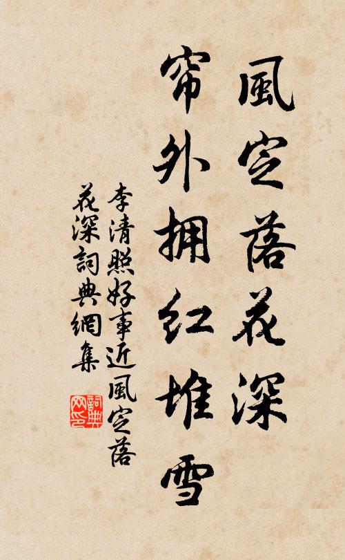 風定落花深,簾外擁紅堆雪。長記海棠開後,正傷春時節。