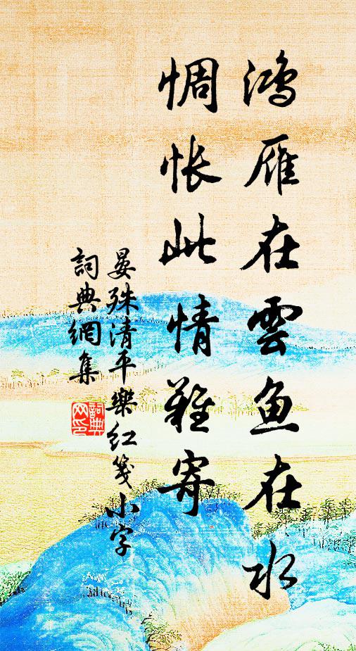 紅箋小字,說盡平生意。鴻雁在雲魚在水,惆悵此情難寄。