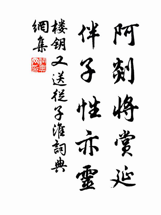 古詩文歷史字典書法欣賞書法字典國語詞典說文解字康熙字典古漢語字典阿剡將賞延,伴子性亦靈樓鑰 《又送從子淮》名句出處出自宋代樓鑰的《又送從子淮》全文:二孫吾所愛,別去殊關情。阿剡將賞延,伴子性亦靈。煩子善誘之,他日使有成。公餘松竹林,共勉洛誦聲。名句書法欣賞阿剡將賞延,伴子性亦靈書法作品樓鑰名句,又送從子淮名句名句推薦繡衣使者何世上,彩舟喚客論交情項安世《賦運使張大監道州石山以張詩平地風瀾險於水》輪停紺幰引江總《賦得謁帝承明廬詩》渴醪能使客忘家,屈指歸期已有涯蘇轍《試院唱酬十一首 次前韻三首》紺殿肇何年,古雅足幽賞彭舉《崇恩寺》梅須遜雪三分白,雪卻輸梅一段香。盧鉞《雪梅·其一》鄞幕多緣奎壁照,鐵做脊樑主公道陳著《贈郡經歷韓君美》廣寒宮殿出身處,仙桂須還第一枝姚勉《賀孫舜皋子周歲》有時南北東西去,白話閒嘈恣放憨釋梵琮《偈頌九十三首》君如能擺脫,林下早相期吳復齋《送何推官》共慶一堂嘉會,萬宇同沾春澤杜東《喜遷鶯(壽楊韓州·正月初五)》四書皆等教,真可發愚蒙郭印《閒看佛書》吾宗灑畫墨,似我詩得趣陳造《陳宣卿為予作雕圖》嗚呼!楚雖三戶能亡秦,豈有堂堂中國空無人陸游《金錯刀行》歸途須傍早,要折石岩紅陳著《柏溪岩頭》庭有枇杷樹,吾妻死之年所手植也,今已亭亭如蓋矣。歸有光《項脊軒志》詩詞推薦題幾谷客〔宋代〕蓬島三山在寸心,先生何事混凡塵。不因門外家人謹,還是無緣遇洞賓。上竺寺釋斯植〔宋代〕古寺寒橋路,鐘聲靜忽聞。數峰平處合,一水眾豀分。老樹煙蘿雨,殘燈石塔雲。閒心寄幽寂,似覺遠塵紛。岫禪師南溪蘭若喻鳧〔唐代〕錫影配瓶光,孤溪照草堂。水懸青石磴,鍾動白雲床。樹色含殘雨,河流帶夕陽。唯應無月夜,瞑目見他方。王叔武示忠州張使君德遠近詩次韻三首曾協〔宋代〕安心今得法,問道舊名庵。雅致追龐老,高風數泐潭。遠公容入社,彌勒本風龕。寄語邦人道,叢林始罷參。搗練子佚名〔宋代〕搗練子,賦梅枝。暖借東風次第吹。自是百花留不住,讓教先發放春歸。省中直舍因敲新懷周元吉三首楊萬里〔宋代〕尚有周郎手種痕,懷人將竹當人看。寄言黃鶴樓前客,今歲新添十五竿。寄高郵僧陳造〔宋代〕門巷蕭然草不鋤,小軒只置兩團蒲。惟師表表叢林秀,眷我涼涼山澤臞。晨飯每同三韭陋,夜棋常辦百籌輸。一書次韻何子應留詩為別王灼〔宋代〕邇跡韓門尚壯年,老陪杖屨本因緣。早知決定書青史,湜籍諸人繼有傳。贈通玄觀道士竹鄉黃庚〔宋代〕通玄道士苦修行,坐見桑田幾變更。雲屋苔封燒藥灶,風林花落煮茶鐺。休糧剩有青松啖,卻老應無白髮生。月滿偈頌一百零九首釋可湘〔宋代〕大公樞機,中流砥柱。歸於掌握,當見設施。