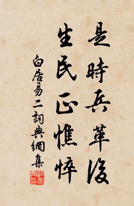 古詩文歷史字典書法欣賞書法字典國語詞典說文解字康熙字典古漢語字典是時兵革後,生民正憔悴白居易 《二》名句出處出自唐代白居易的《二》全文:憶昨元和初,忝備諫官位。是時兵革後,生民正憔悴。但傷民病痛,不識時忌諱。遂作秦中吟,一吟悲一事。貴人皆怪怒,閒人亦非訾。天高未及聞,荊棘生滿地。惟有唐衢見,知我平生志。一讀興嘆嗟,再吟垂涕泗。因和三十韻,手題遠緘寄。致吾陳杜間,賞愛非常意。此人無復見,此詩猶可貴。今日開篋看,蠹魚損文字。不知何處葬,欲問先噓唏。終去哭墳前,還君一掬淚。名句書法欣賞是時兵革後,生民正憔悴書法作品白居易名句,二名句名句推薦爾我無自性,常光遍天下釋印肅《金剛隨機無盡頌無為福勝分第十一》揚眉吐氣快生風,萬里歸來虎帳中佚名《上太師公相生辰詩十首》珍珠瑪瑙盈襟馬鈺《滿庭芳 夢中見珍寶不知其數,至於衣襟盈滿》好景未嘗無興詠,壯心都已入消磨邵雍《謝富丞相招出仕二首》去年崔護詩仍在,前度劉郎意獨親李流謙《桃花》要路拋來自寡憂,高懷捲去白雲收范仲淹《知府孫學士見示和終南監宮太保道懷五首因以》又如在寒谷,終歲雪霜驕張嵲《玩所植松竹有作》湘潭歸夢遠,燕趙客程勞許渾《曉發天井關寄李師晦》學宮岧嶢壓勝概,百泉曲折流方池趙汝鐩《湘西行》要尋閒世界,不在世界外楊萬里《寄題萬元享舍人園享七景閒世界》不見聯驂處秦觀《虞美人(三之一)》知心似古人,歲久分彌親方乾《別喻鳧》秋至雲容斂,天中日景清陶拱《秋日懸清光》碧玉蔀中藏蜀錦,東吳宮裹鎖西施張浩《詠未開牡丹贈李氏》泥涼閒倚竹,奈冉冉、碧云何仇遠《木蘭花慢》詩詞推薦詩一首謝直〔宋代〕上有皇天下后土,此身不患無歸所。憑誰說與清河公,何苦為人和黃社。贈別空公馬戴〔唐代〕雲門秋卻入,微徑久無人。後夜中峰月,空林百衲身。寂聊寒磐盡,盥漱瀑泉新。履跡誰相見,松風掃石塵。送許耀卿監丞同年赴靜江倅四絕范成大〔宋代〕官塗真有上竿魚,玉筍翻乘別駕車。聞道留行有公論,從今日日看除書。取蘭梅置几上三首張嵲〔宋代〕崇蘭梅蘂竝時芳,更得春風為發揚。還似高人有常德,年年只作舊時香。初夏陸游〔宋代〕買得新船疾似飛,蠶飢遙望採桑歸。越羅蜀錦吾何用,且備豳人卒歲衣。送令狐憲周度支知秀州梅堯臣〔宋代〕鬢絲不是吳蠶吐,未到吳中已成縷。清腸無繭自能生,窮愁便織連今古。論兵說劍三十秋,乃知功名難強取。往往出見京華之盛而作晁說之〔宋代〕飄零羇客尚驚魂,乍見王居白玉城。三市盡迷南北向,入騶爭禁短長行。花栘陸海春常在,樓接神山月不傾。安得淳熙七年端午帖子詞皇帝合六首崔敦詩〔宋代〕采縷盤金麗,香蒲鏤玉勻。君王千萬壽,歲歲樂茲辰。憶秦娥(為曹氏胭脂閣嘆)劉辰翁〔宋代〕春如昨。曉風吹透胭脂閣。胭脂閣。滿園茅草,冷煙城郭。青衫淚盡樓頭角。佳人夢斷花間約。花間約。黃昏細雨翁尉以詩送蓮並酒李彌遜〔宋代〕不復西河吹踽涼,真成仙吏隱襄陽。一生可了酒供座,千頃平鋪花繞塘。皓腕折香庶老眼,長須洗杓薦新嘗。肯分