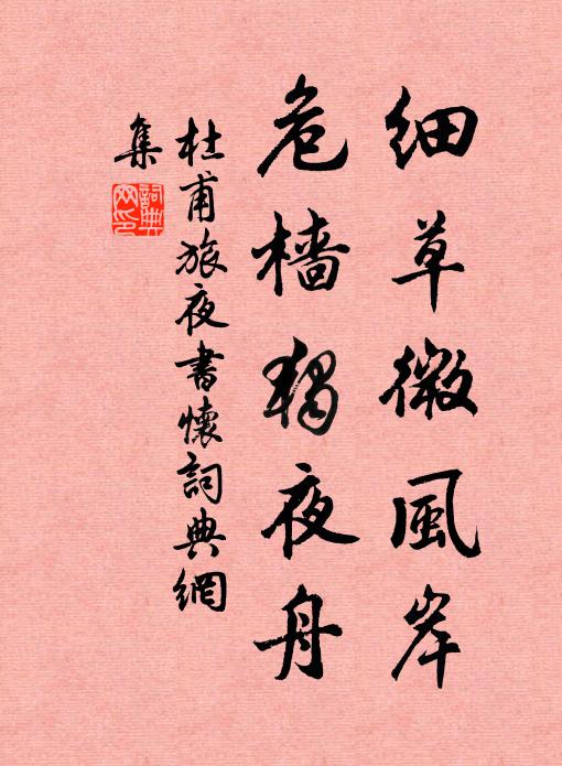微風吹拂著江岸的細草,那立著高高桅桿的小船在夜裡孤零地停泊著。