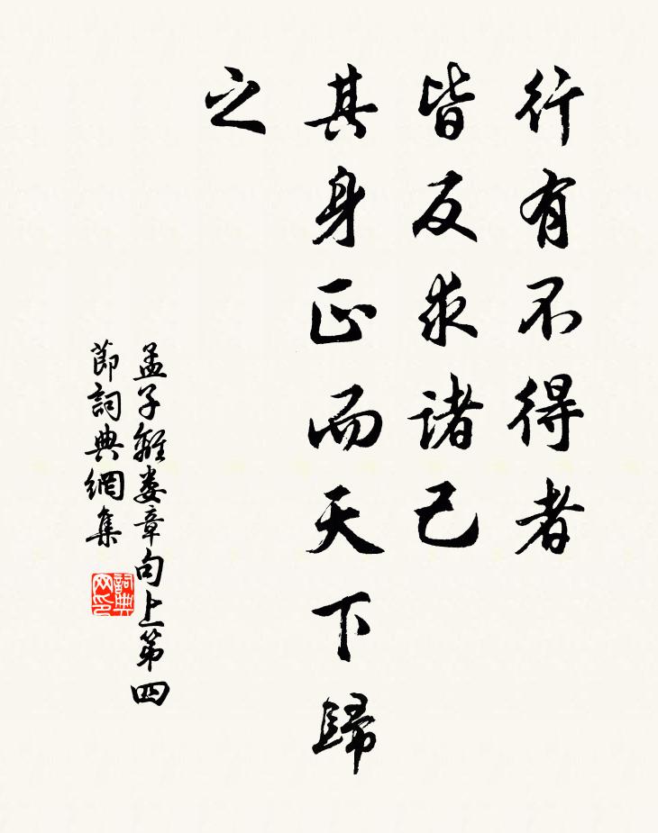 孟子曰:“愛人不親反其仁,治人不治反其智,禮人不答反其敬。行有不得者,皆反求諸己,其身正而天下歸之。詩云:‘永言配命,自求多福。’”