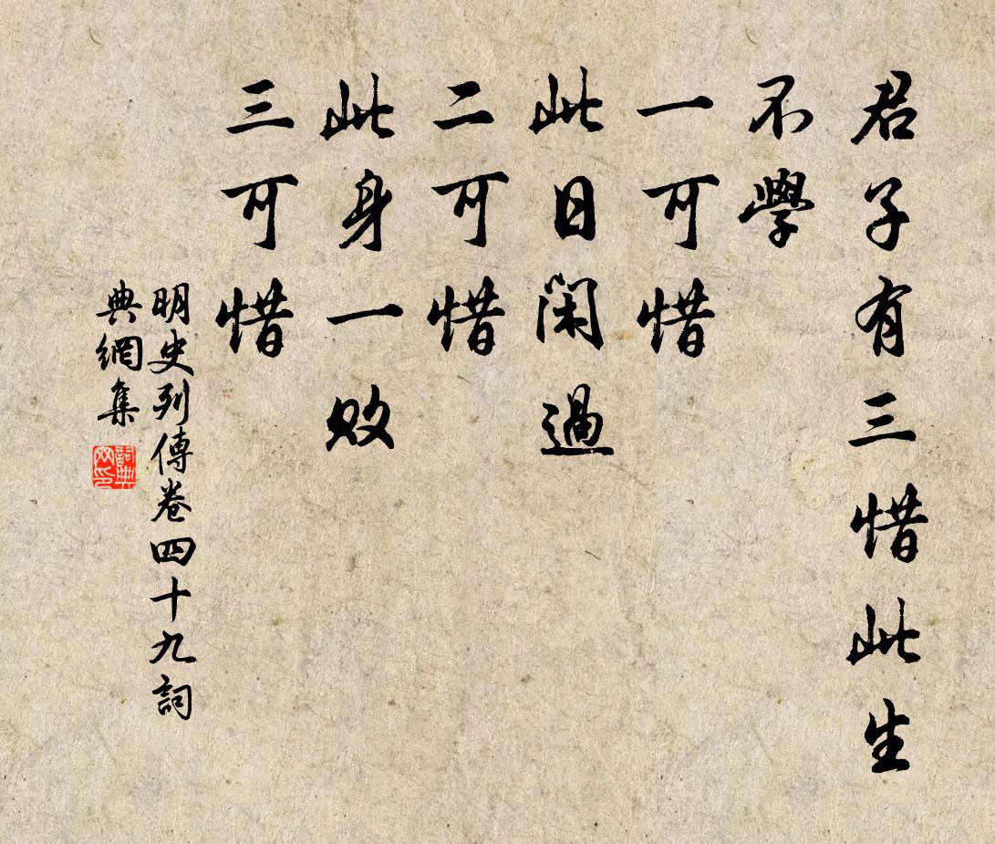 君子有三惜:此生不學,一可惜。此日閒過,二可惜。此身一敗,三可惜。