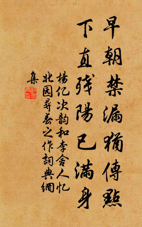 早朝禁漏猶傳點,下直殘陽已滿身。