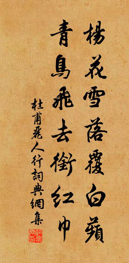 楊花雪落覆白蘋,青鳥飛去銜紅巾。